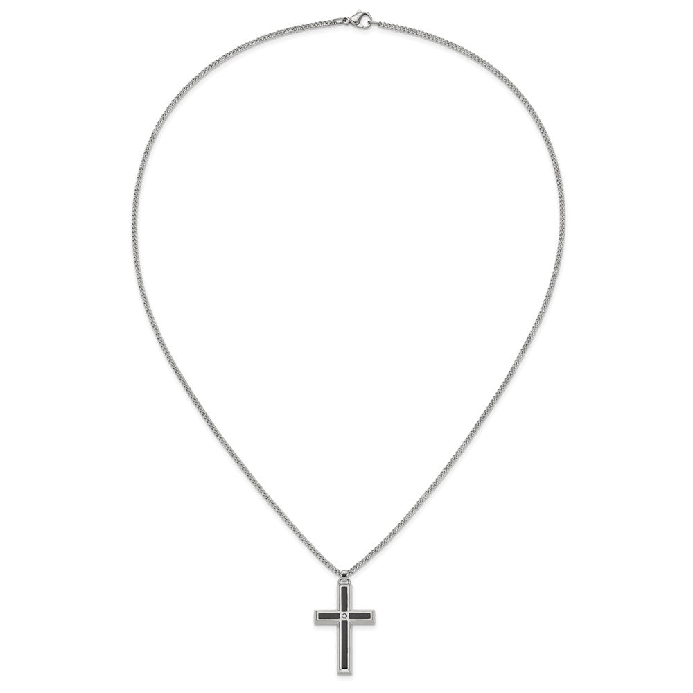 Stainless Steel with Black Enamel Inlay Diamond Cross 24 inch Curb Chain Necklace