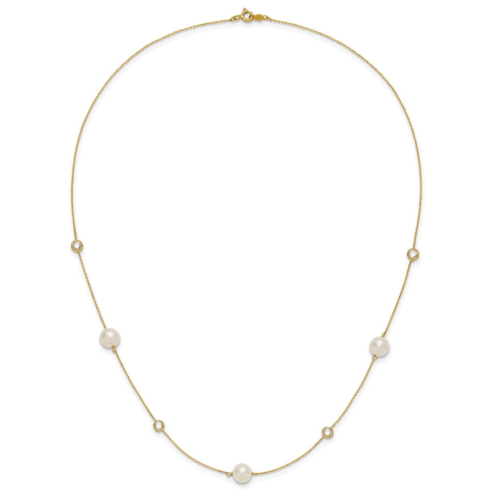 10K Polished CZ and 7-8mm FWC Pearl 7 Station Necklace