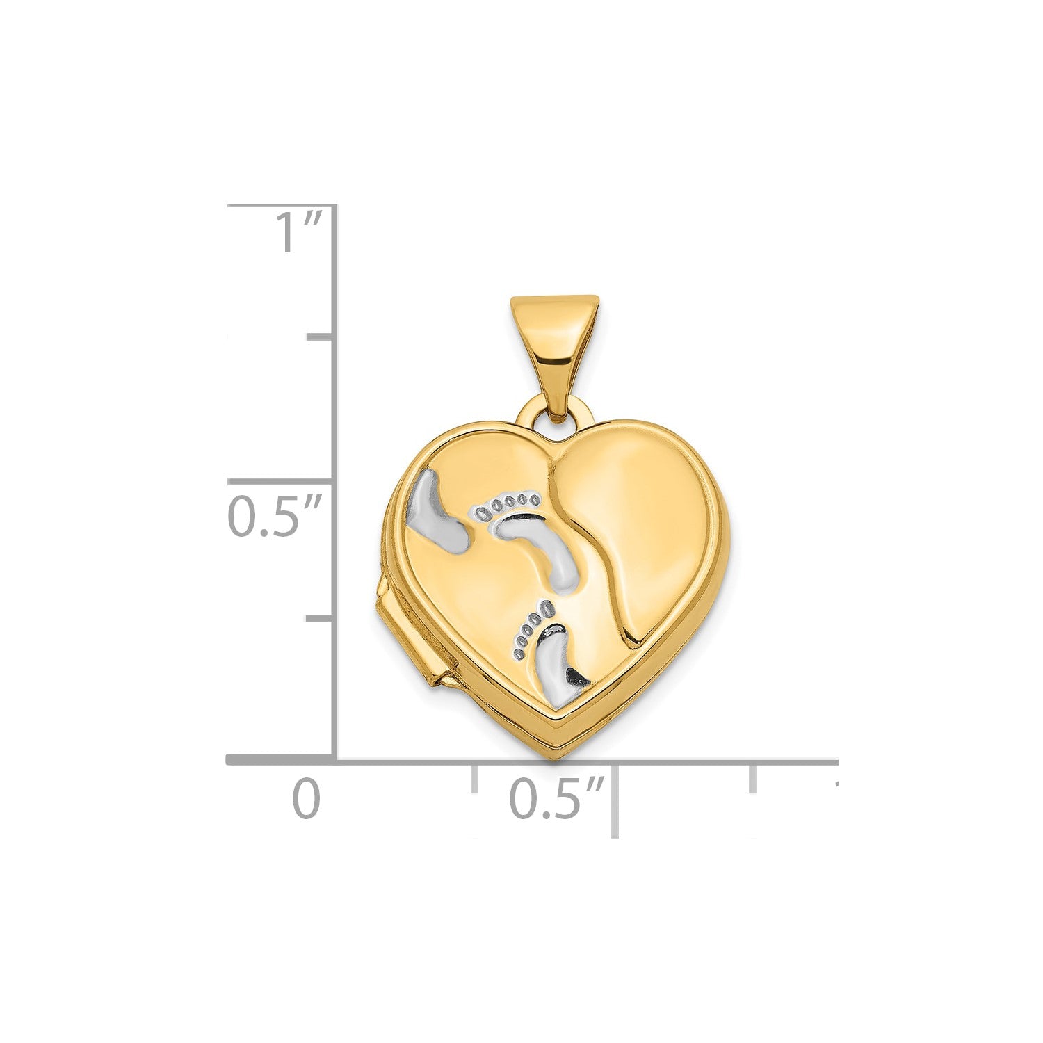 GL 10k w/ White Rhodium 15mm Reversible Foot Prints Heart Locket
