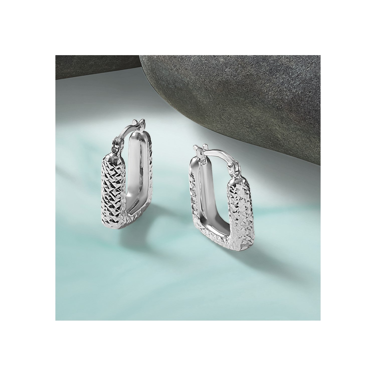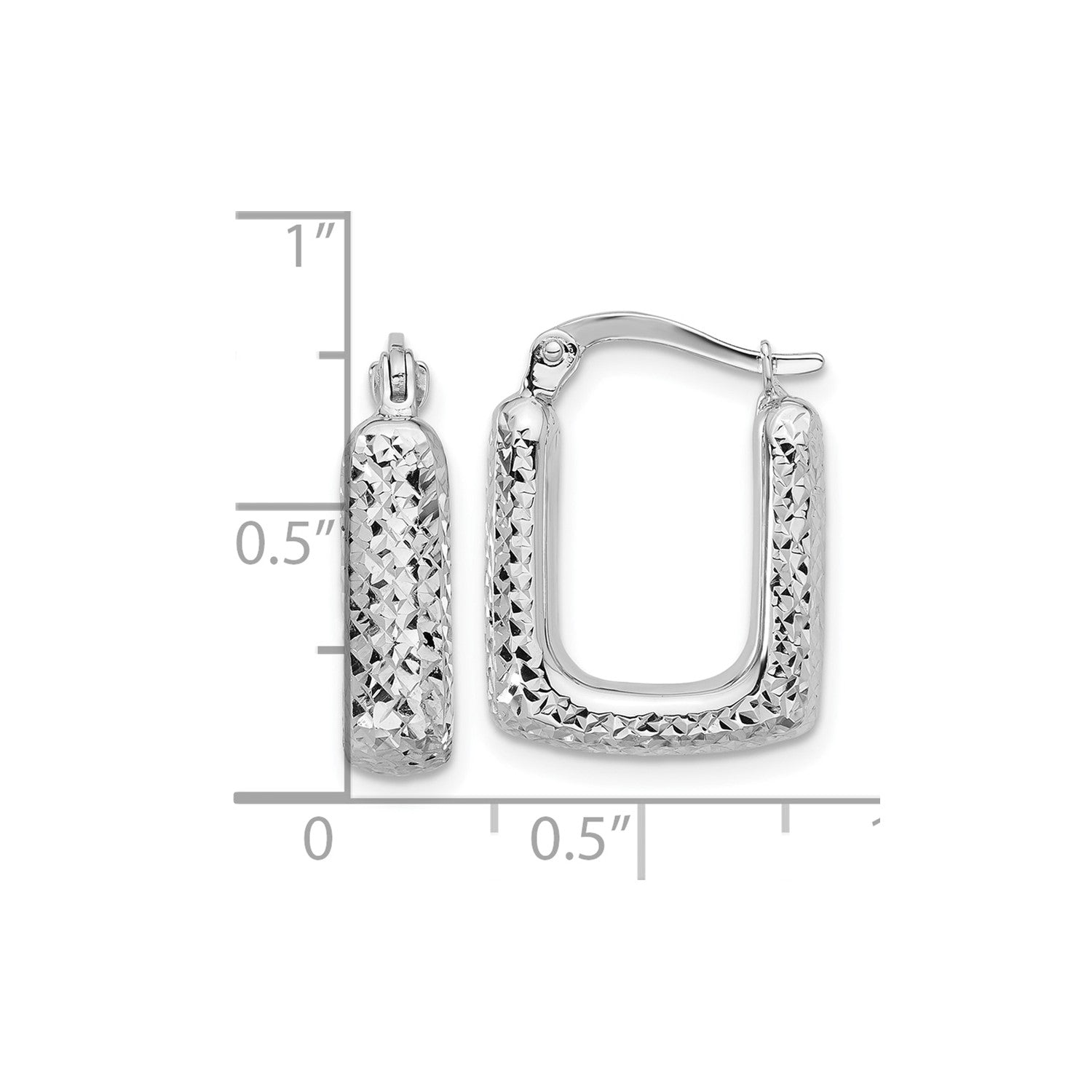 GE 10K White Gold Polished and Diamond-cut Square Hoop Earrings