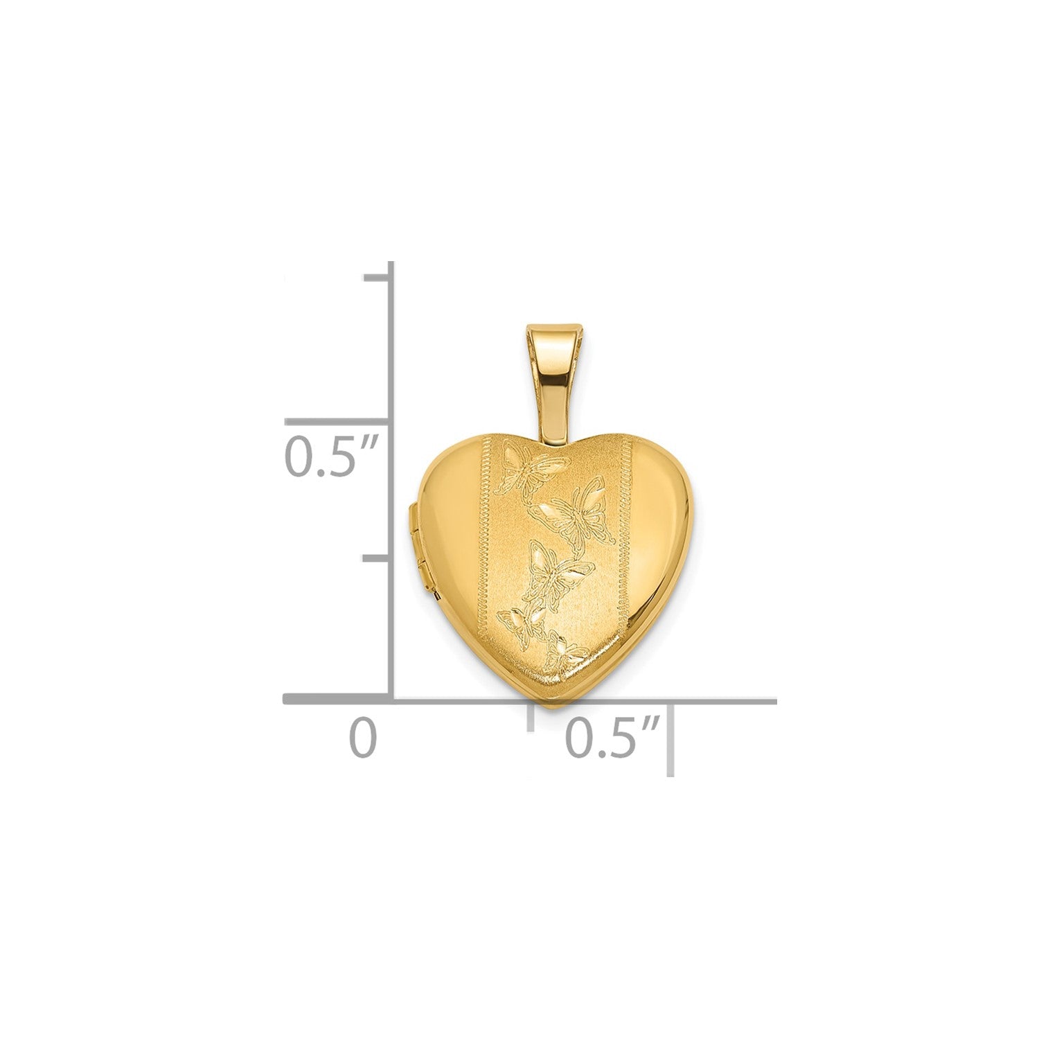 GL 14K Polished and Satin 12mm Butterfly Heart Locket