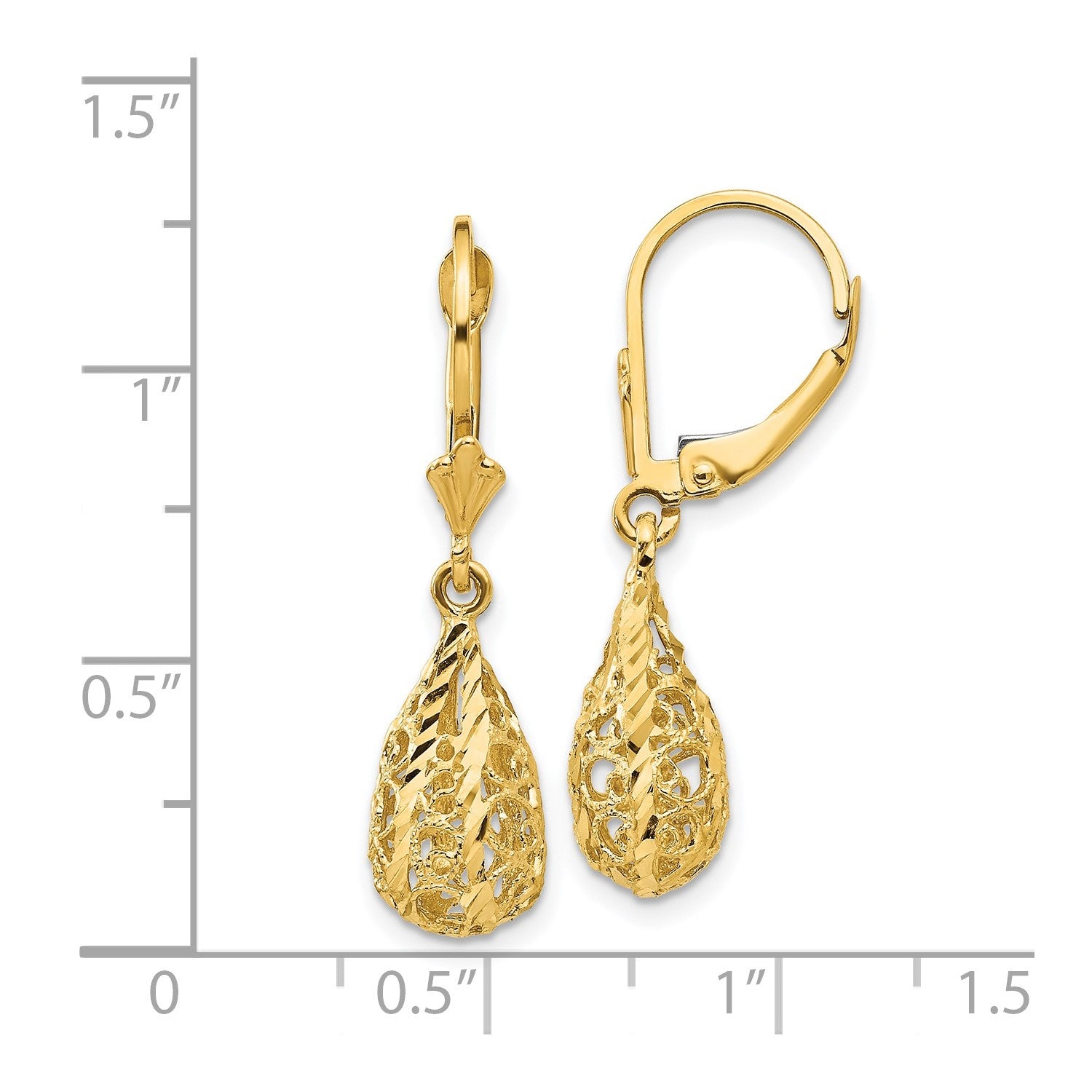 GE 14k Polished Diamond-Cut Filigree Dangle Leverback Earrings