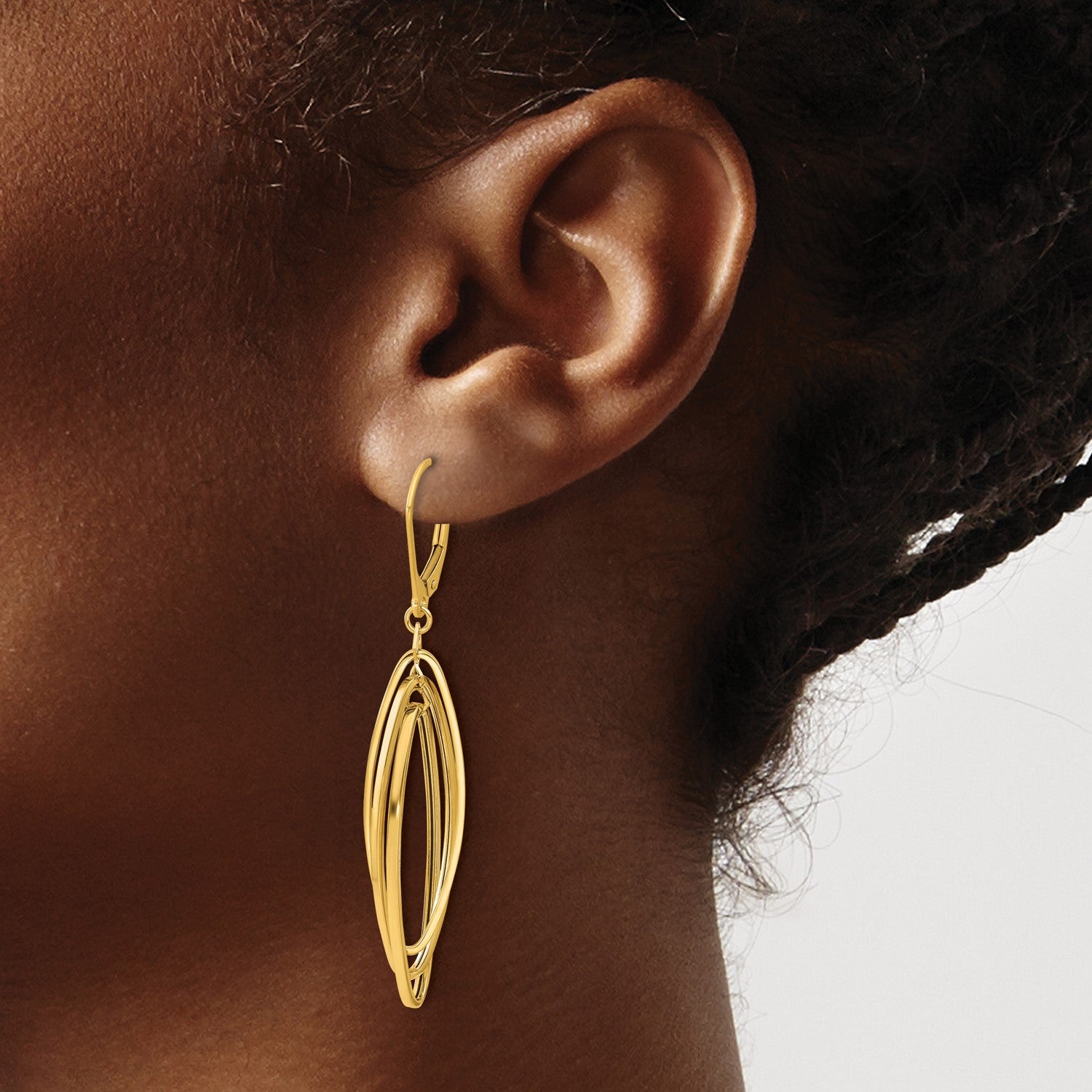 GE 14k Polished Oval Twisted Dangle Leverback Earrings