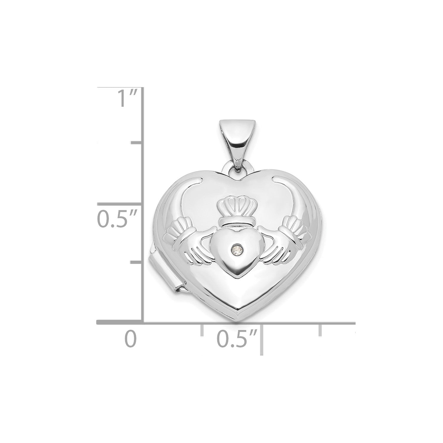 DL 14k White Gold Diamond Heart Claddagh Locket