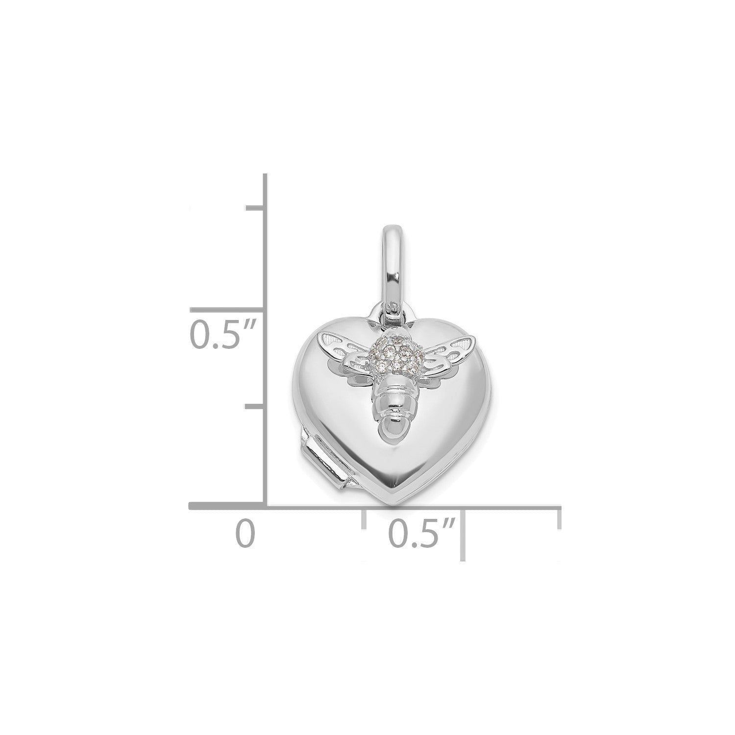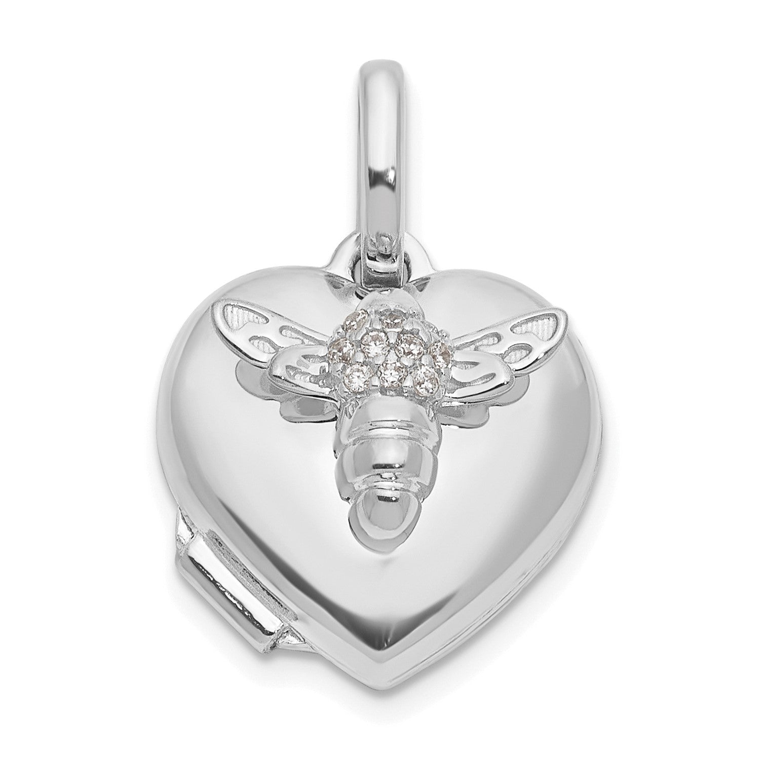 GL 14k White Gold Polished CZ Bee Heart 12mm Locket