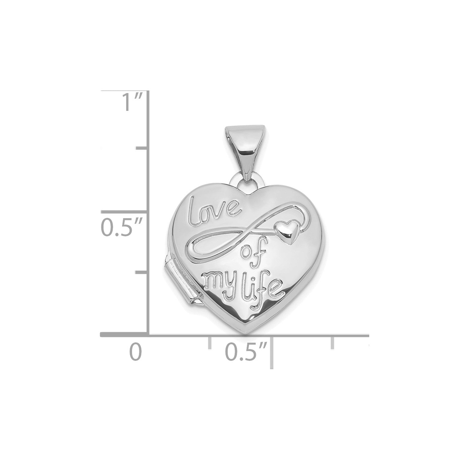 GL 14k White Gold Polished LOVE OF MY LIFE 15mm Heart Locket