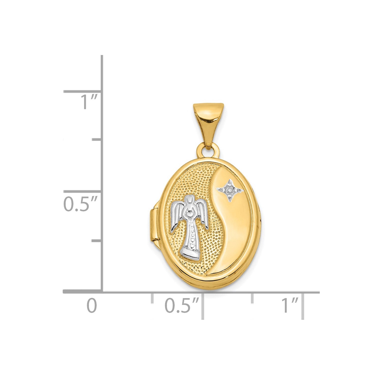 GL 14ky w/ White Rhodium 17mm Guardian Angel Oval Locket