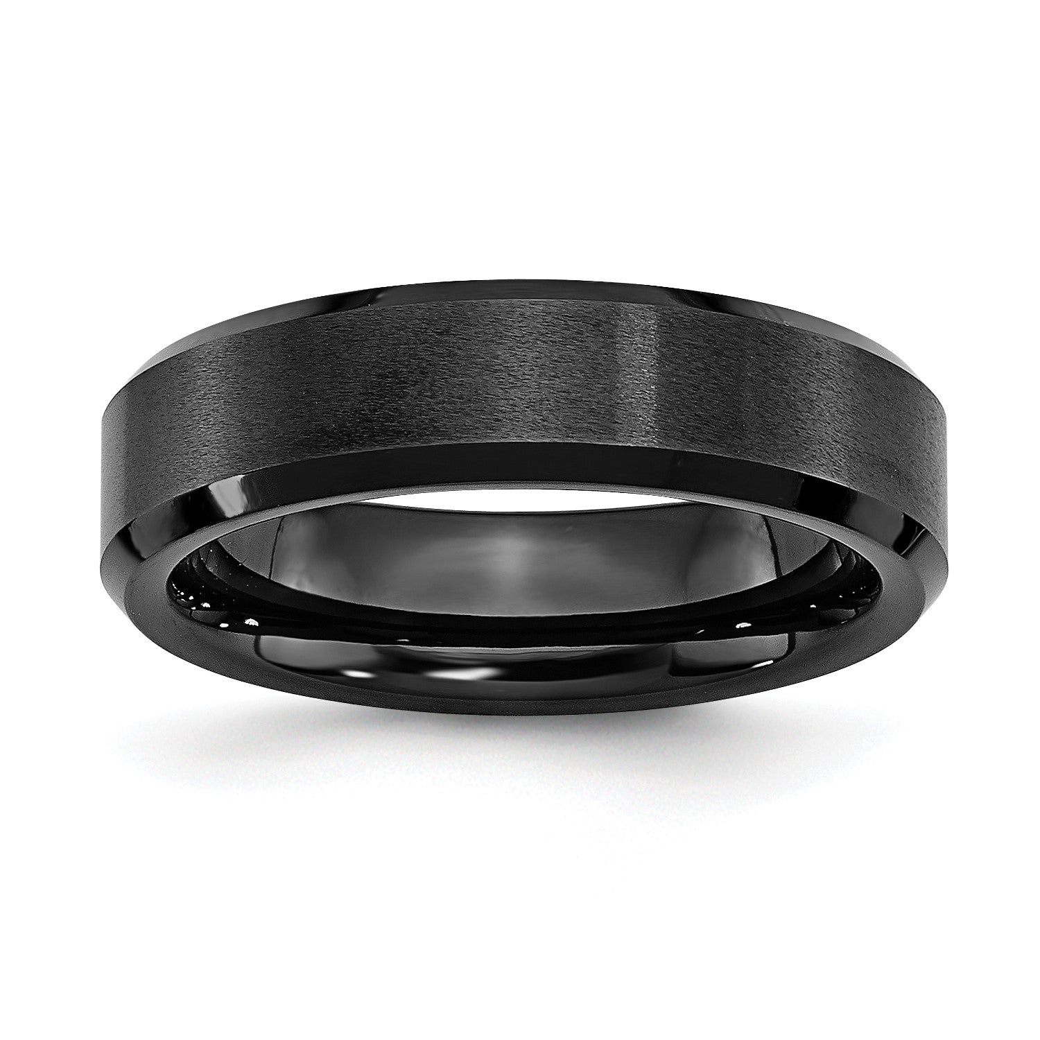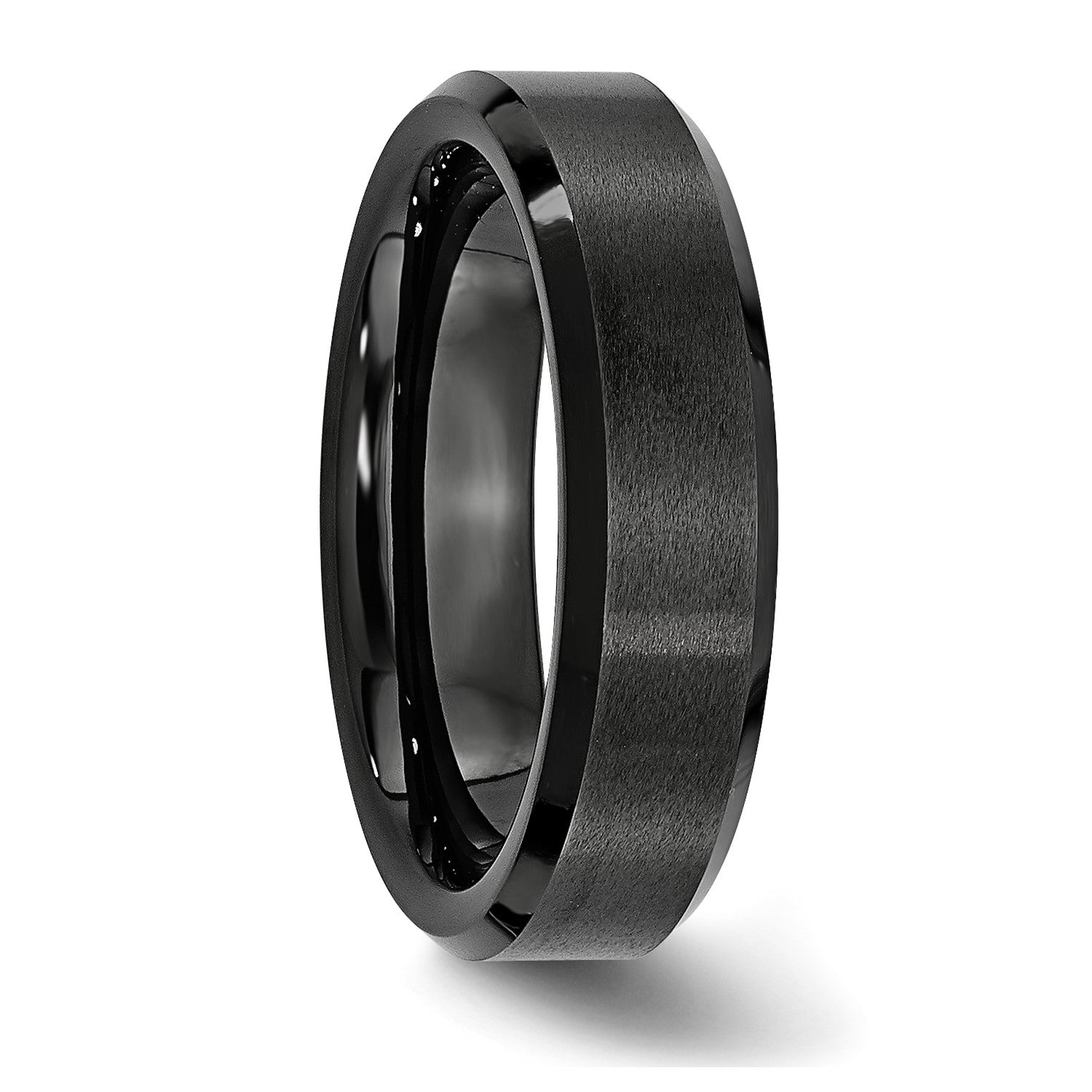 MJ Black Ceramic Beveled Edge 6mm Brushed and Polished Band