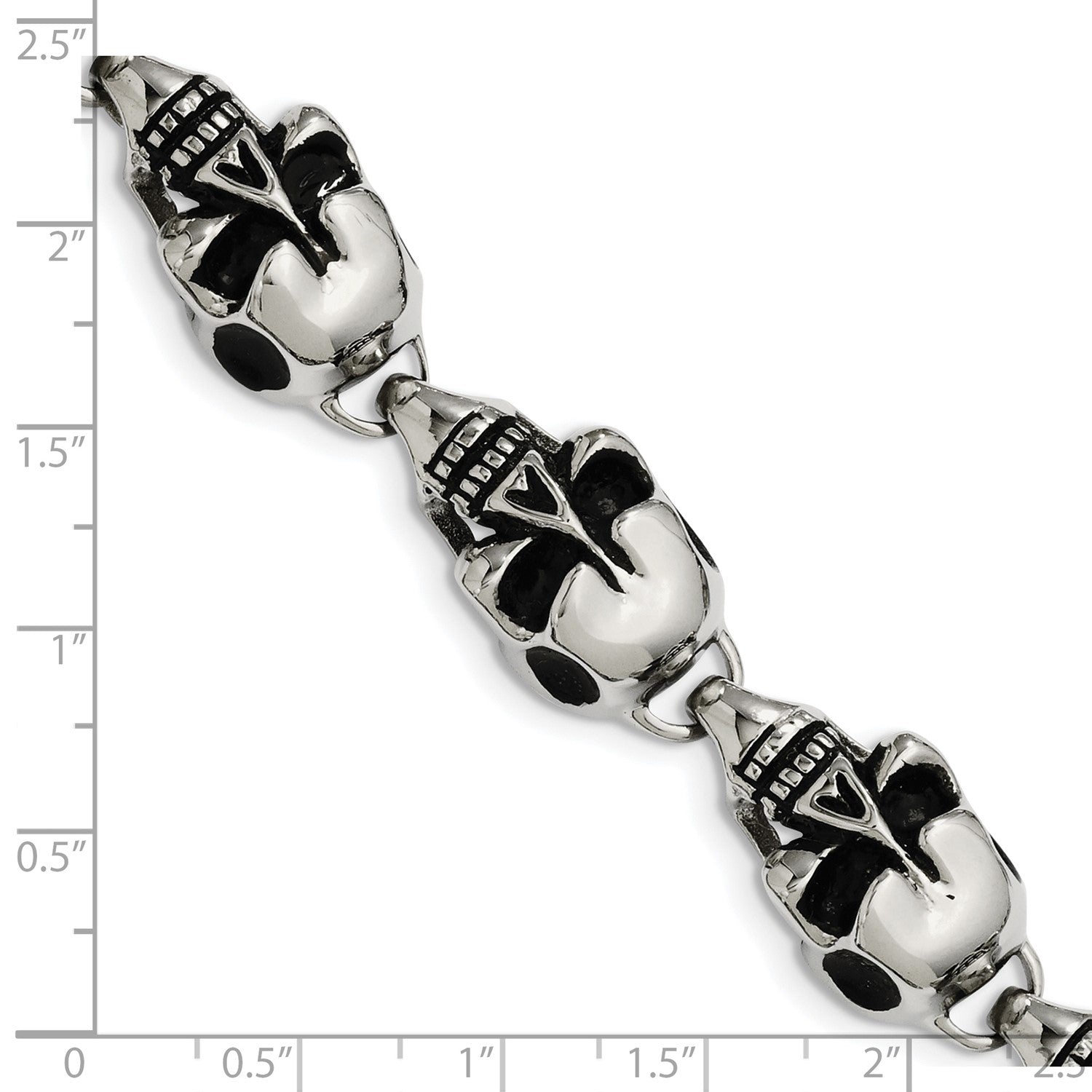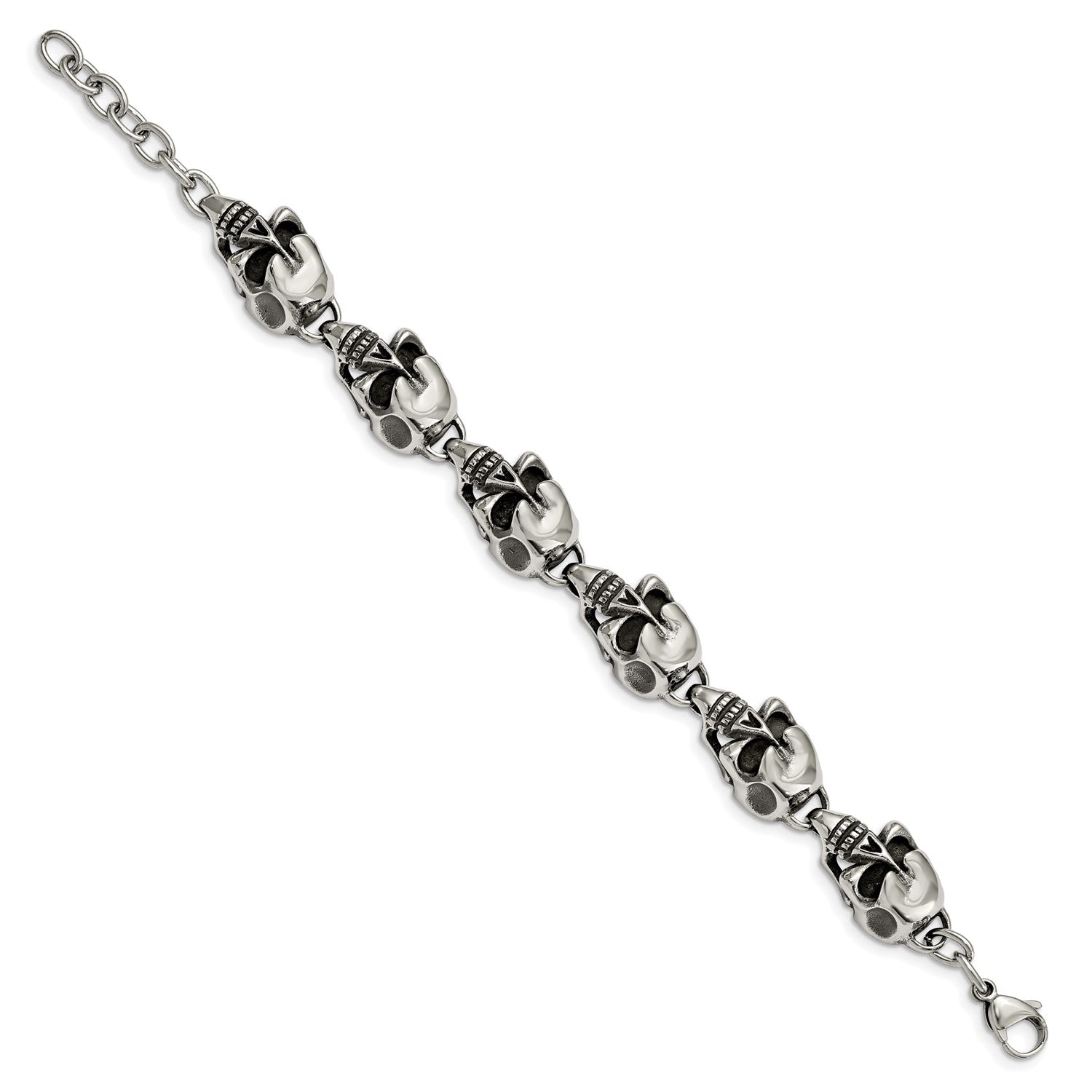 MJ Stainless Steel Antiqued and Polished Skull Link 8.5 inch Bracelet