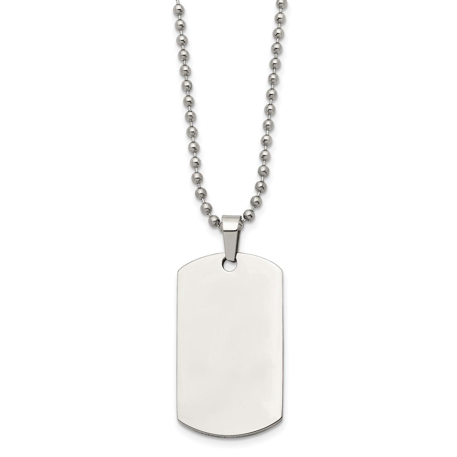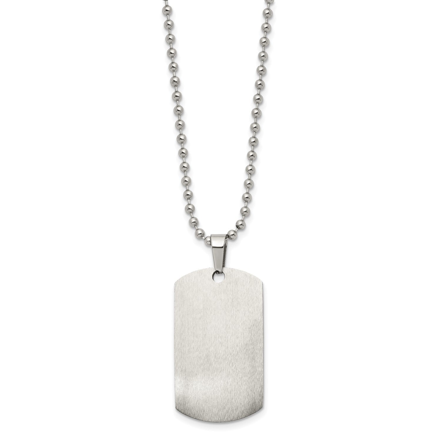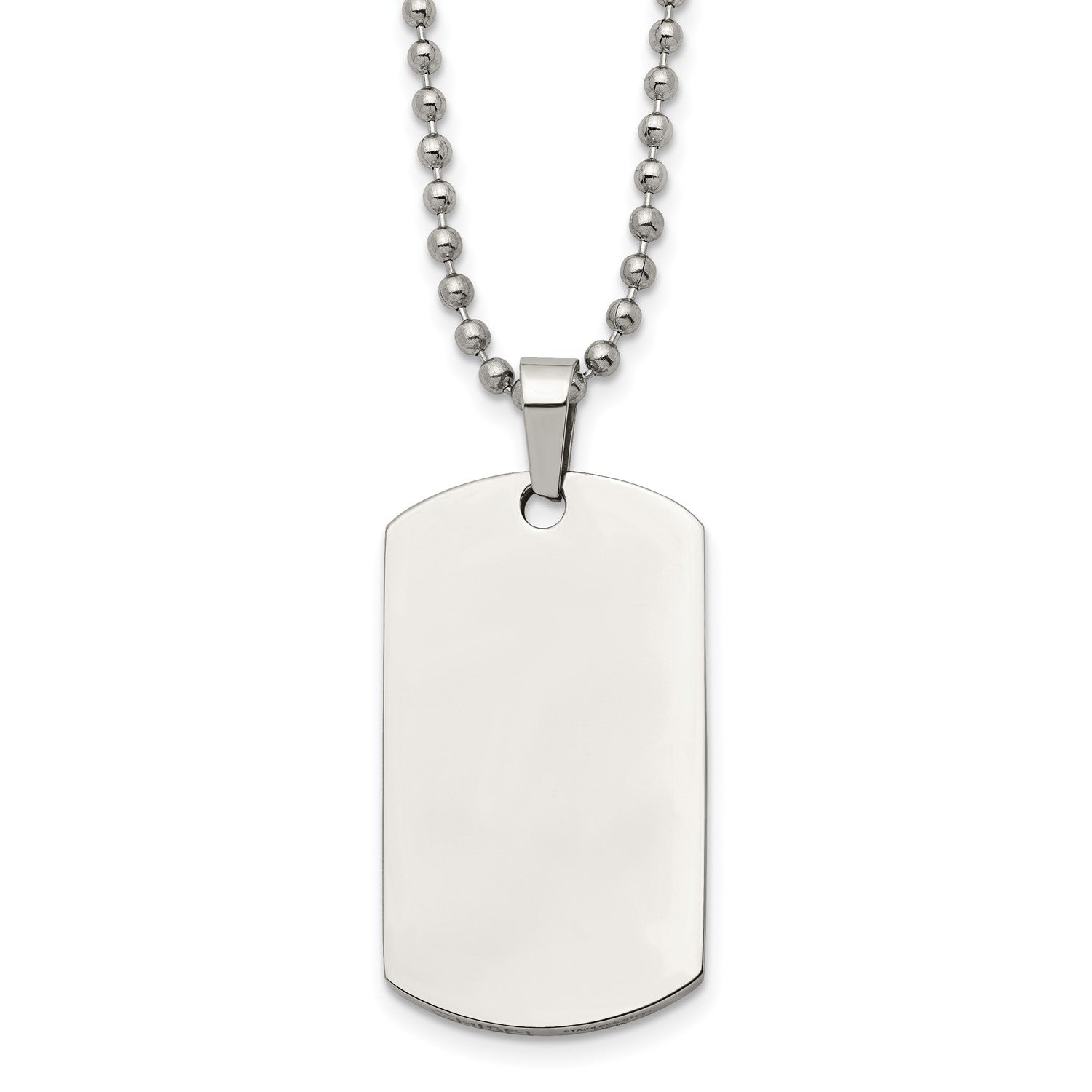 MJ Stainless Steel Brushed and Polished Rounded Edge 2mm Dog Tag on a 24 inch Ball Chain Necklace