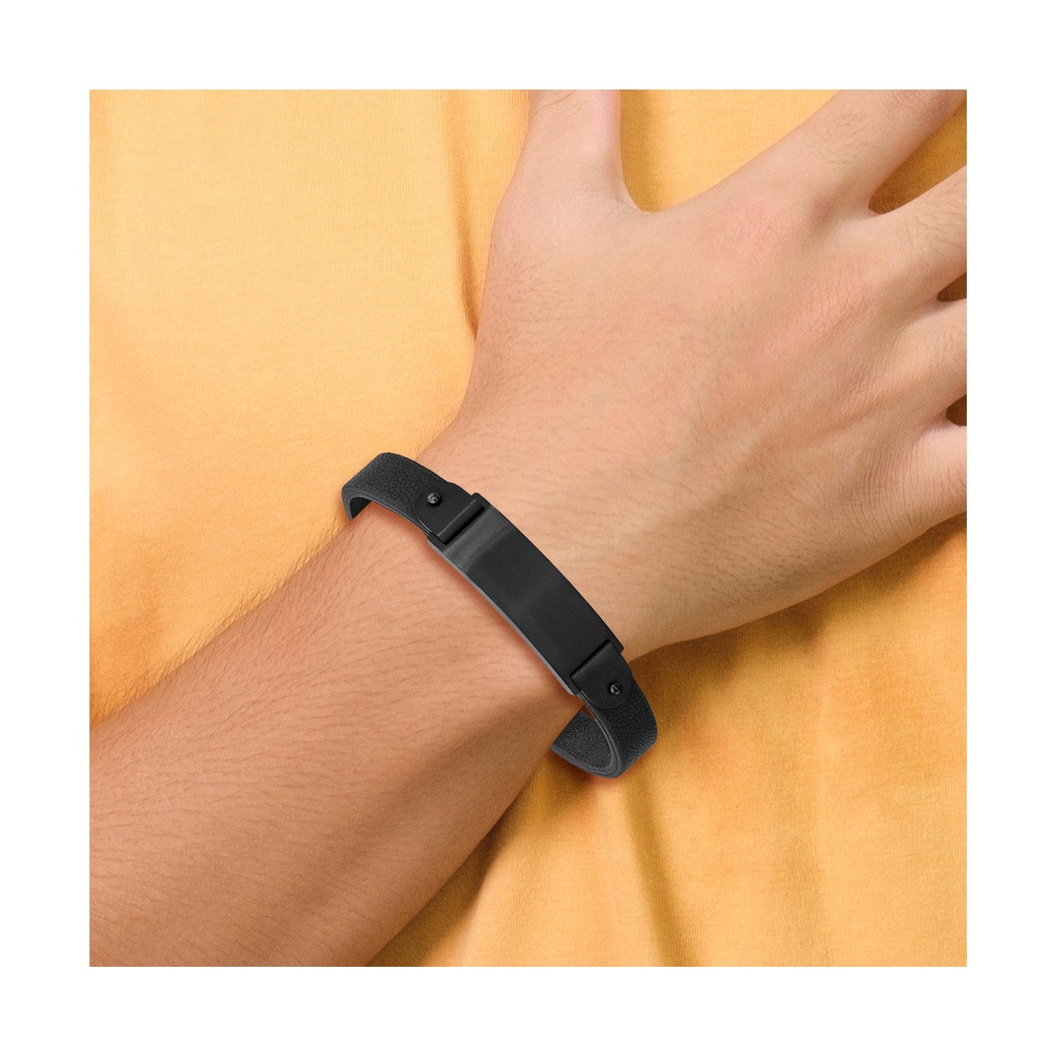 MJ Stainless Steel Brushed Black IP-plated Black Leather 8.5 inch ID Bracelet