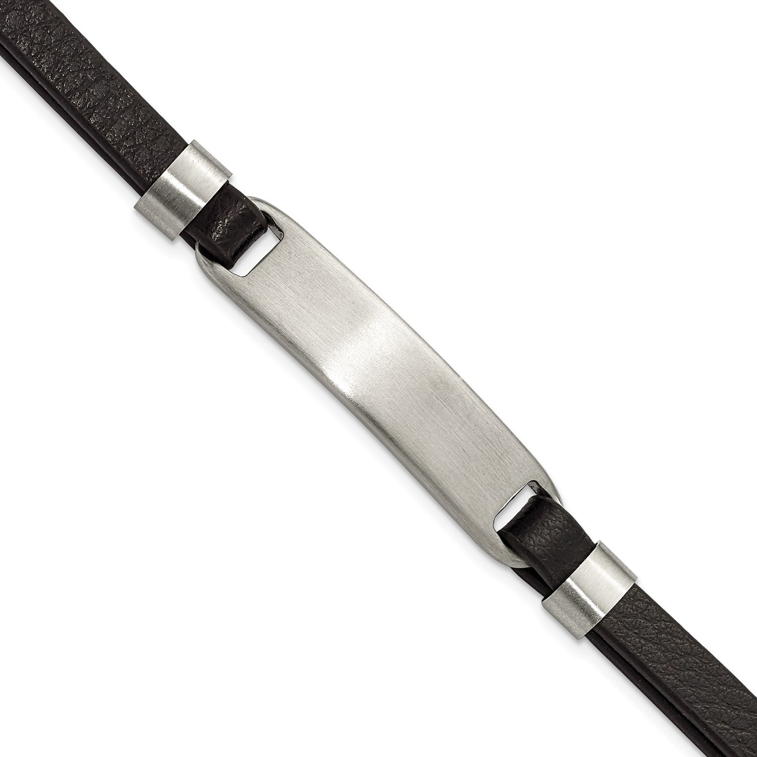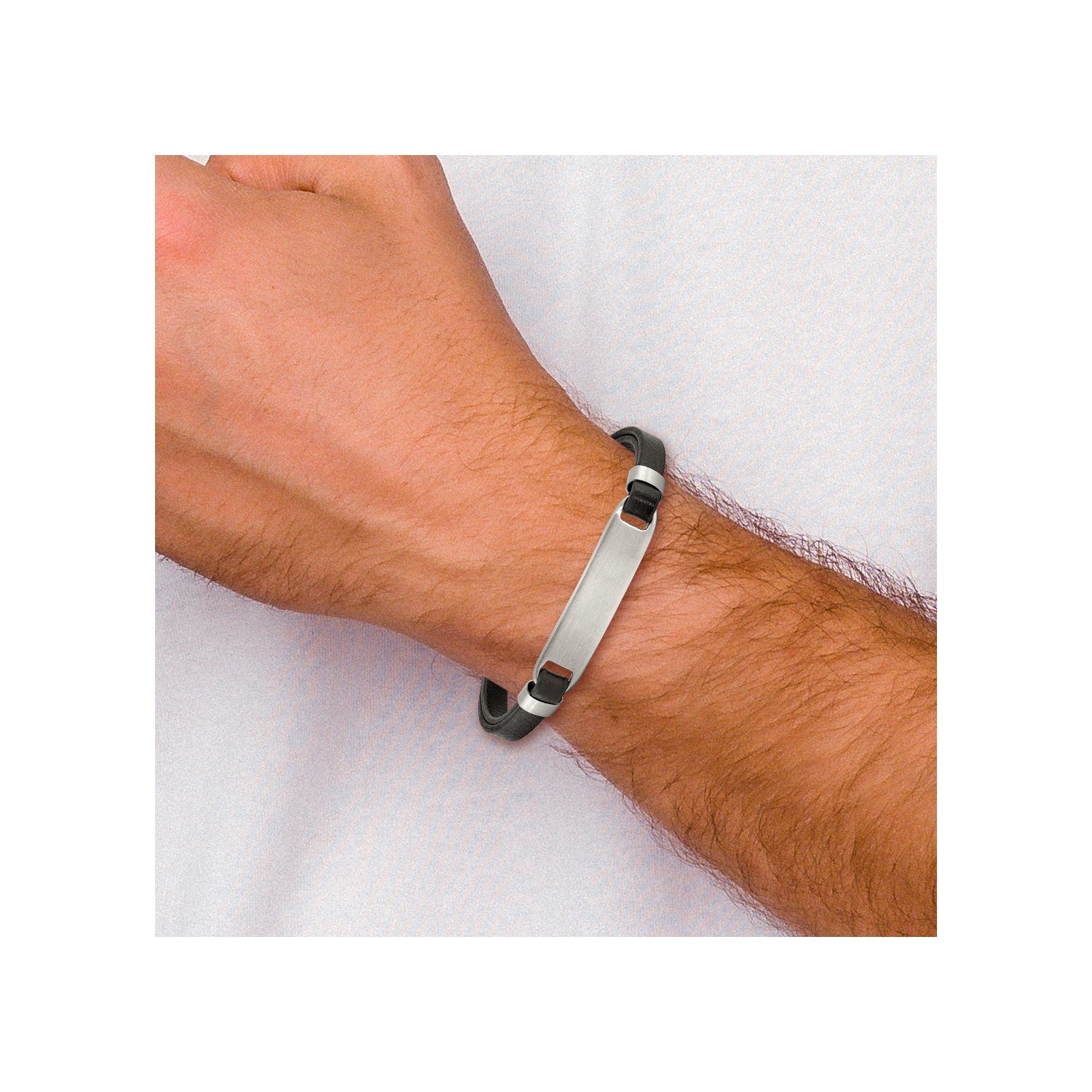 MJ Stainless Steel Brushed Black Leather 8 inch ID Bracelet with .5 inch Extension