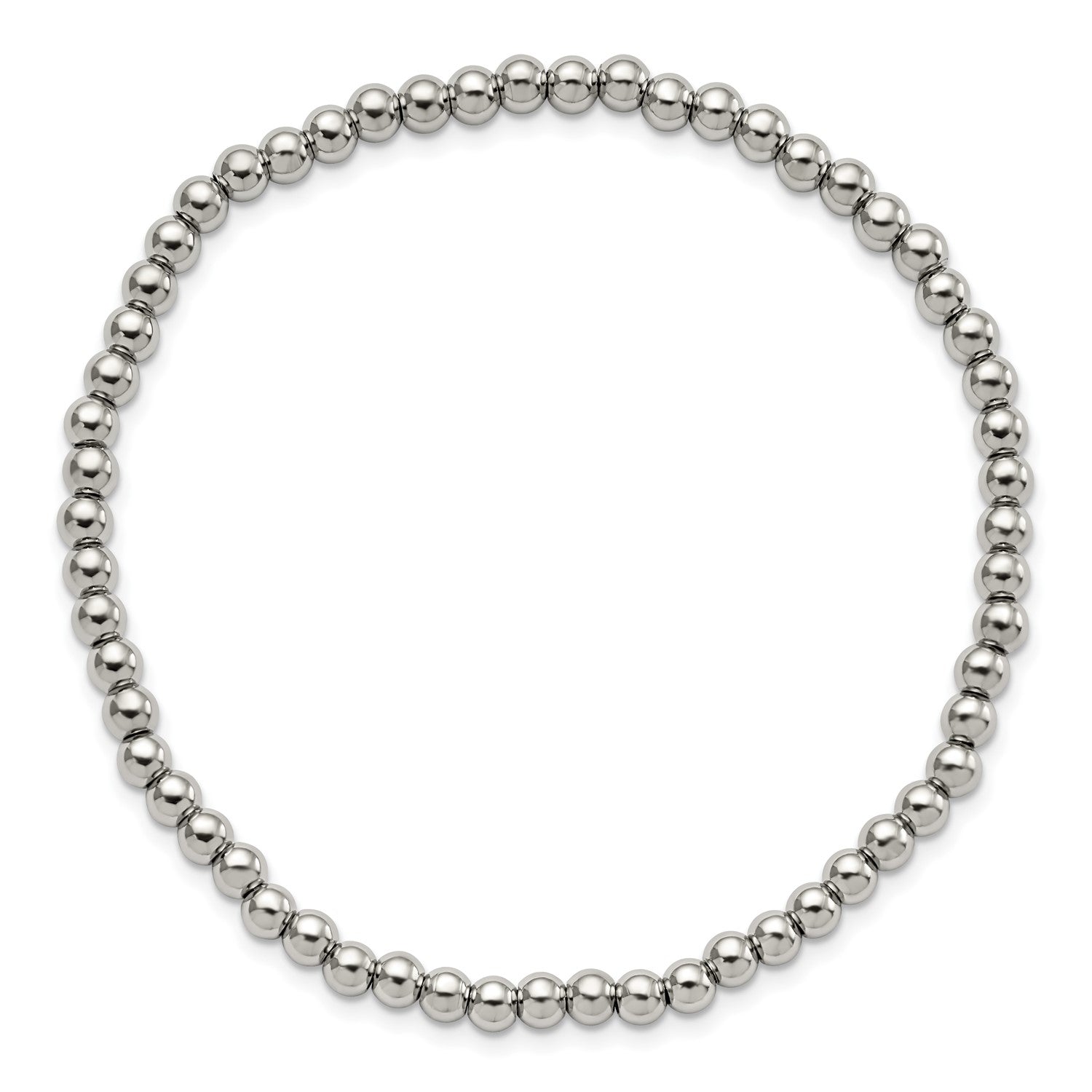MJ Stainless Steel Polished 4mm Beaded Stretch Bracelet