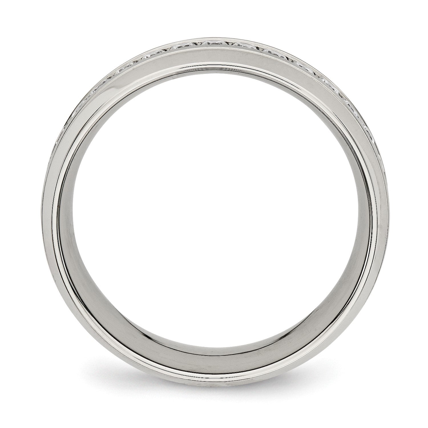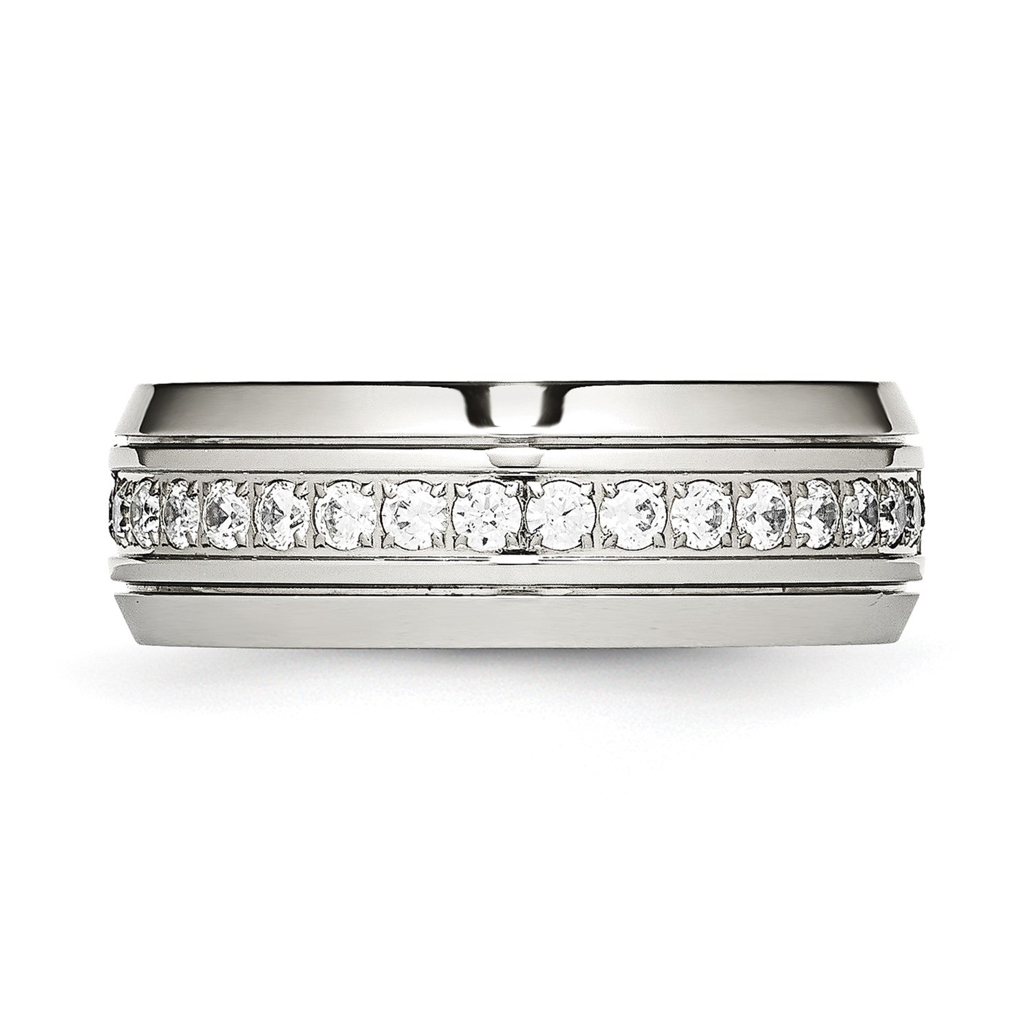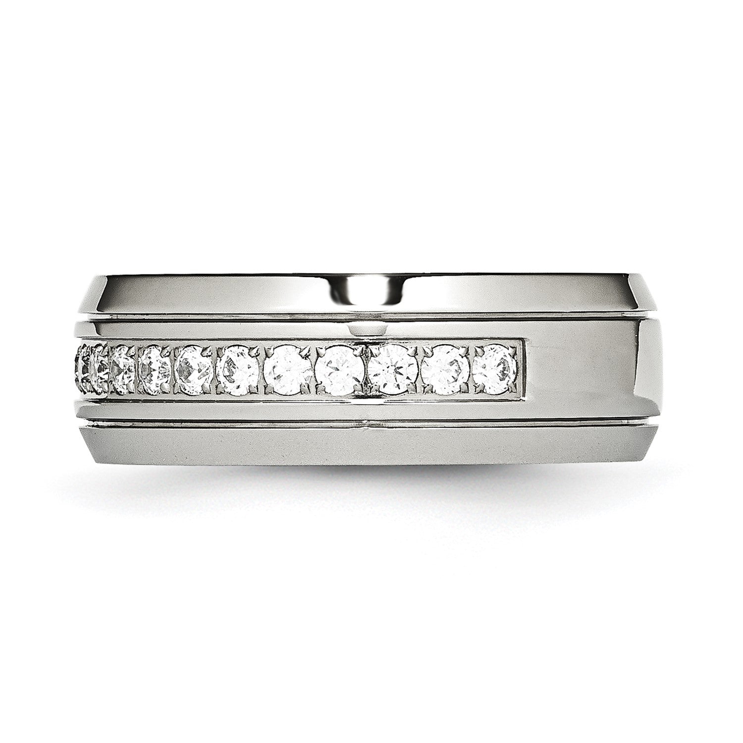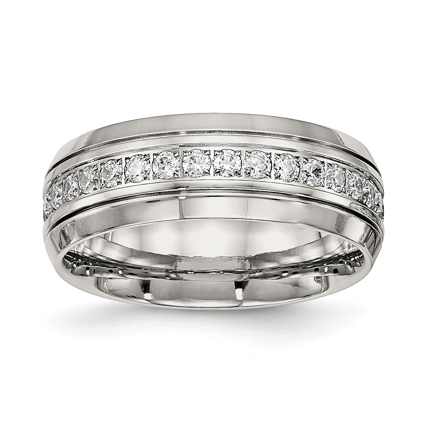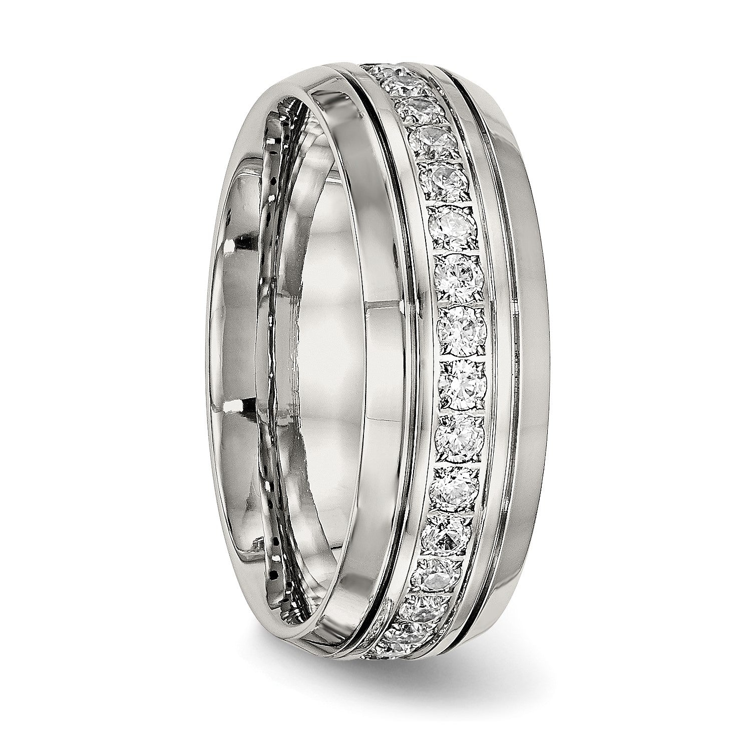 MJ Stainless Steel Polished and Grooved with CZ 8mm Half Round Band