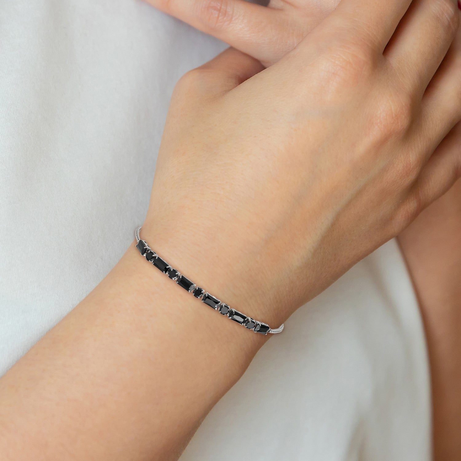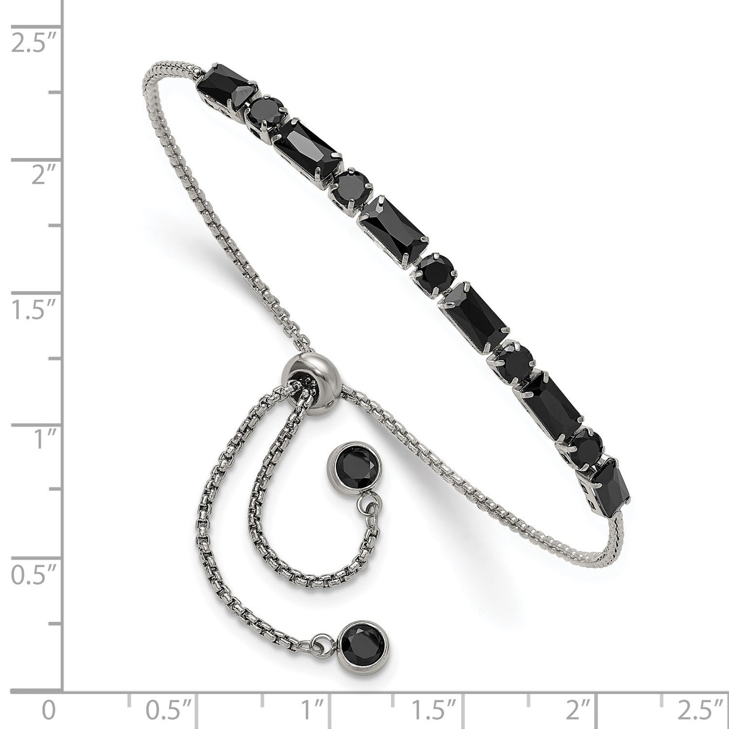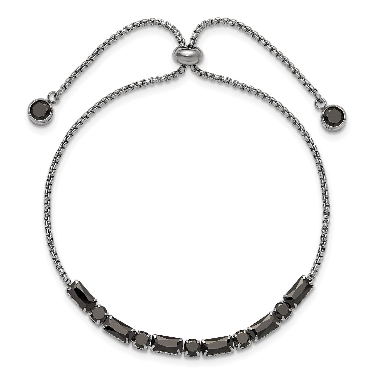 MJ Stainless Steel Polished Black CZ Adjustable Bracelet