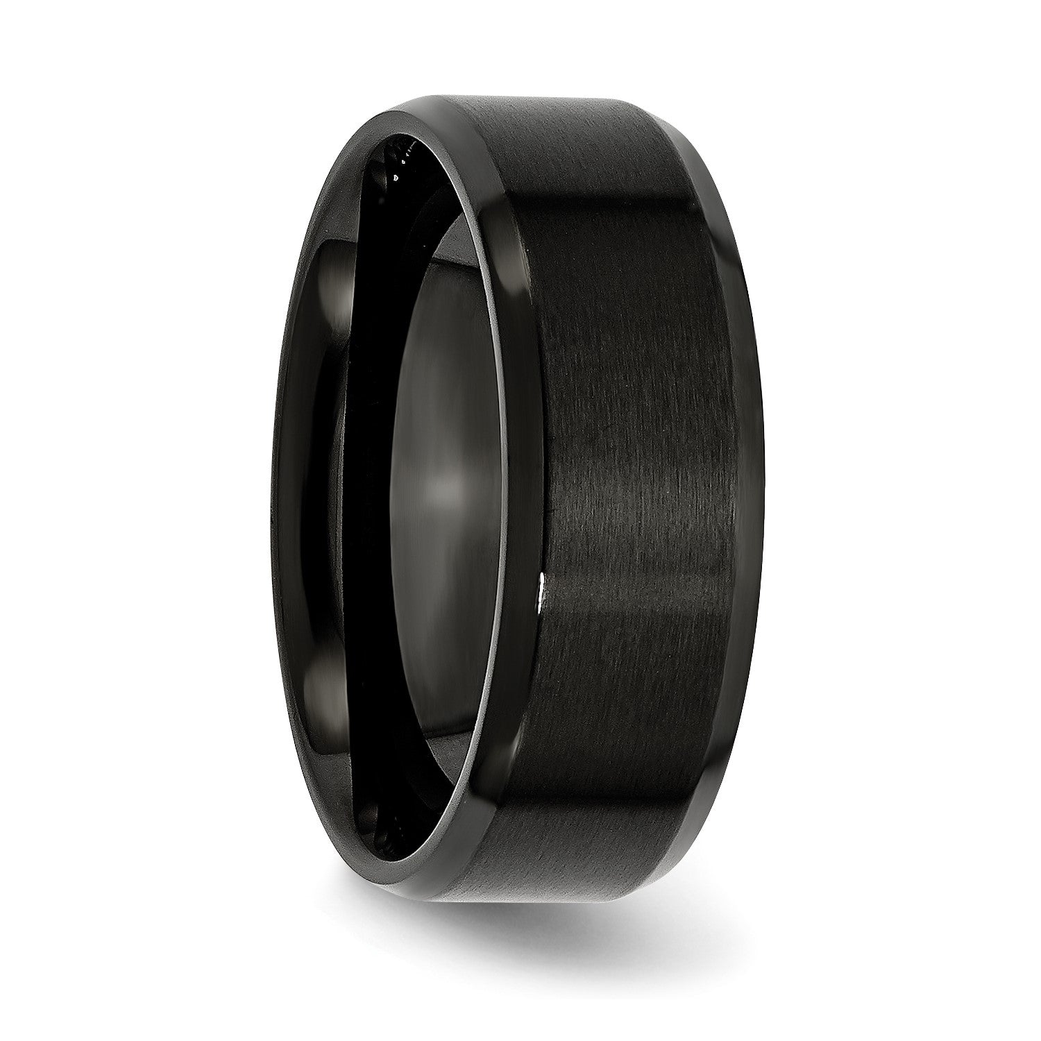 MJ Stainless Steel Polished Brushed Center Black IP-plated 8mm Beveled Edge Band