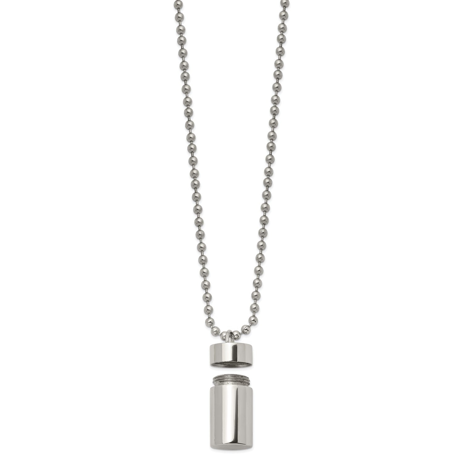 MJ Stainless Steel Polished Capsule that Opens on a 22 inch Ball Chain Necklace