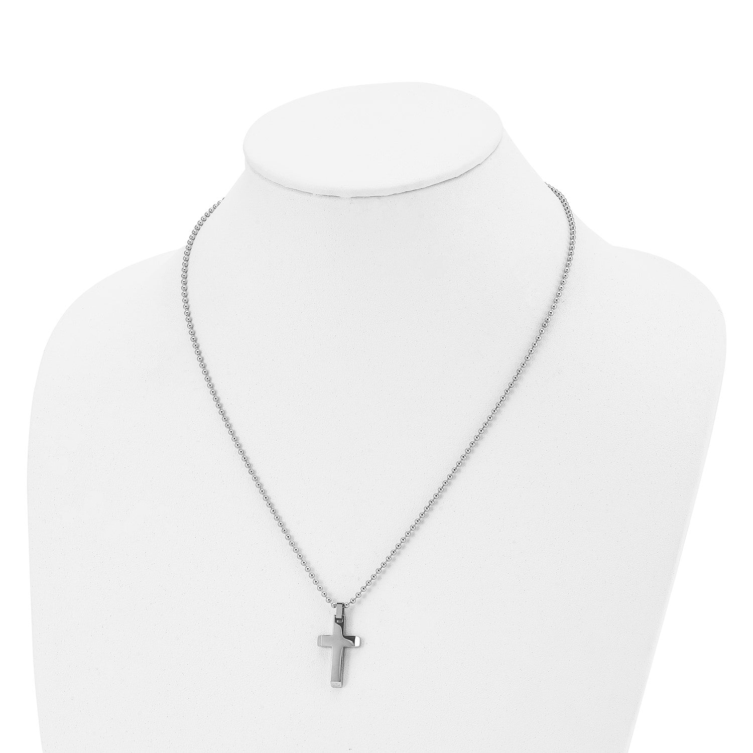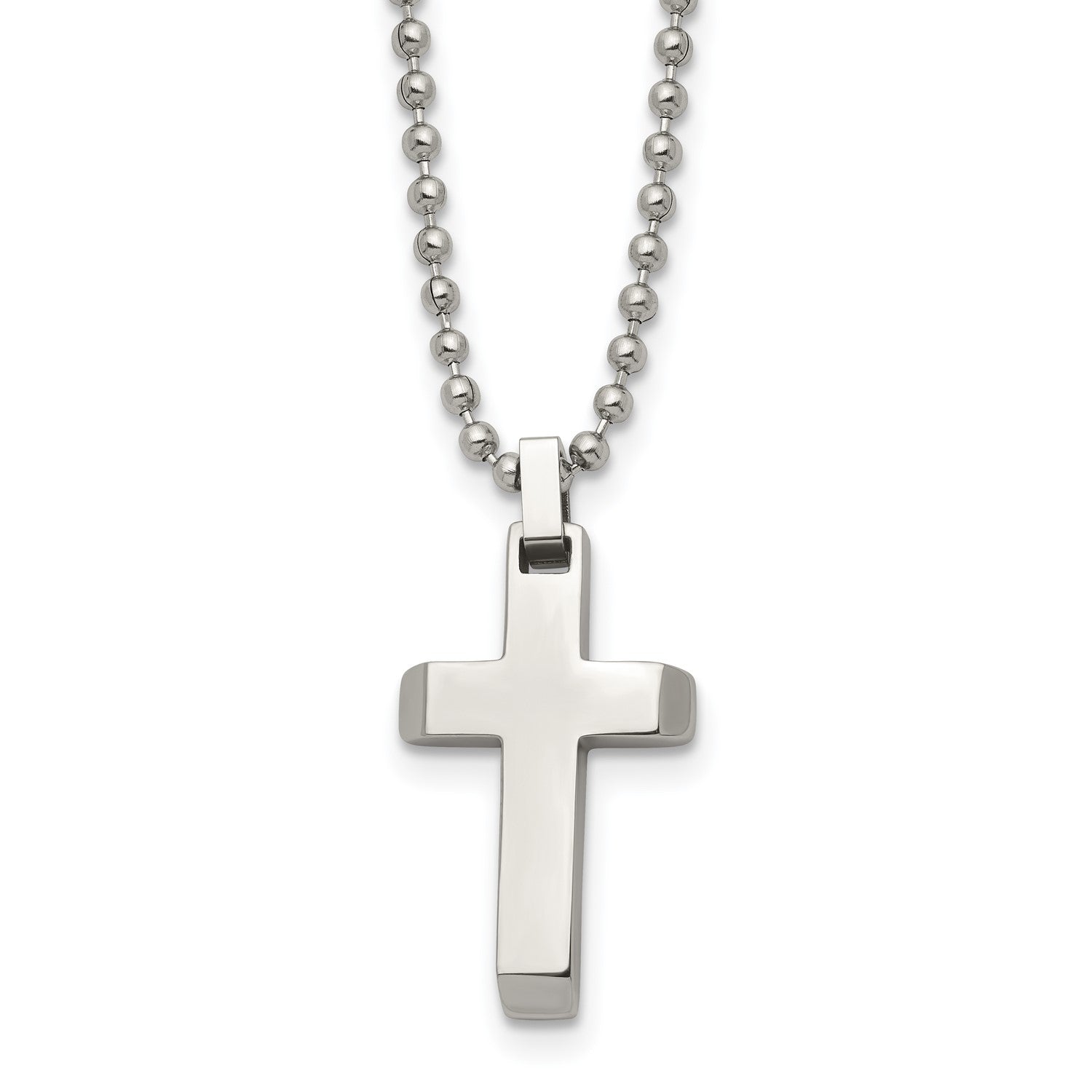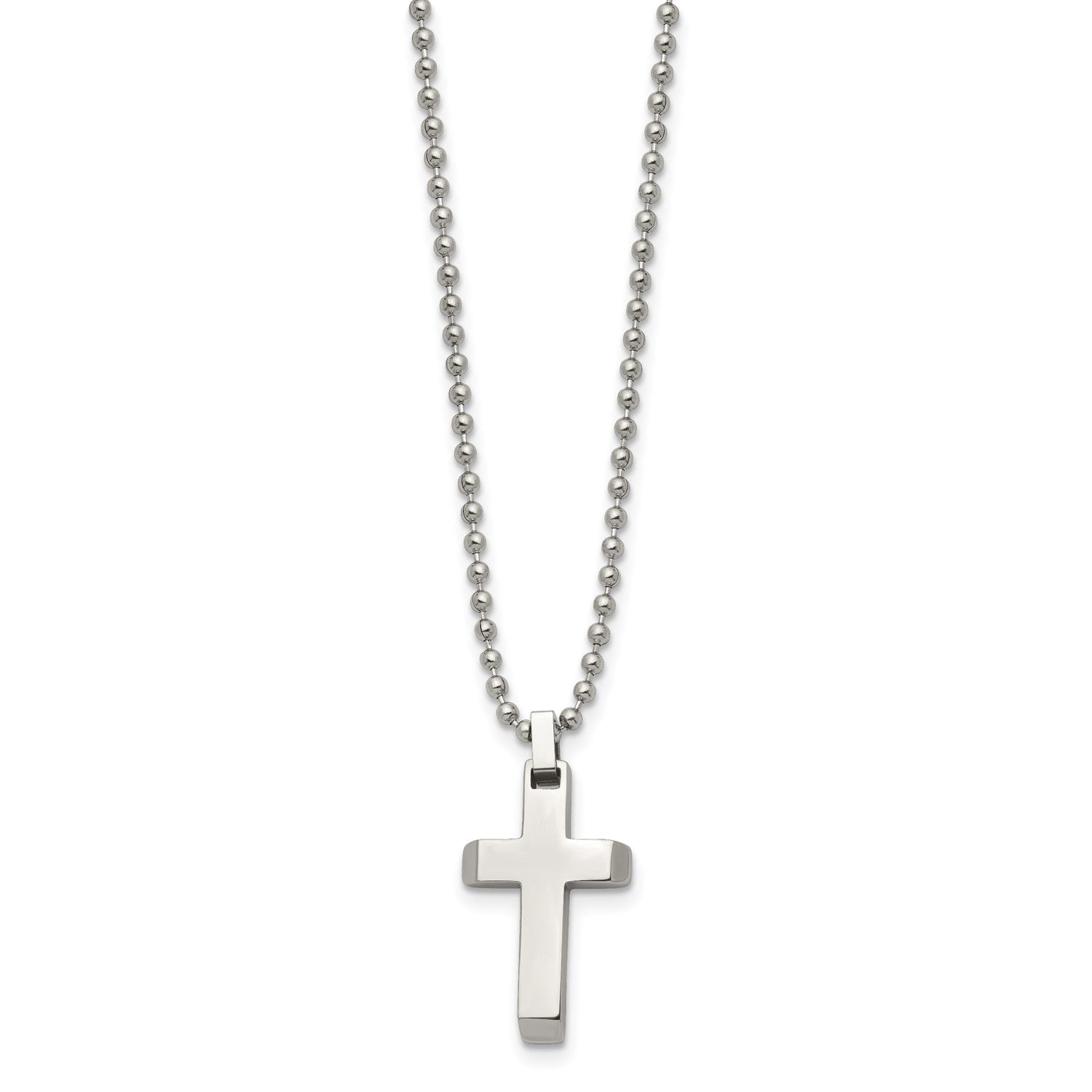 MJ Stainless Steel Polished Cross Pendant on a 20 inch Ball Chain Necklace