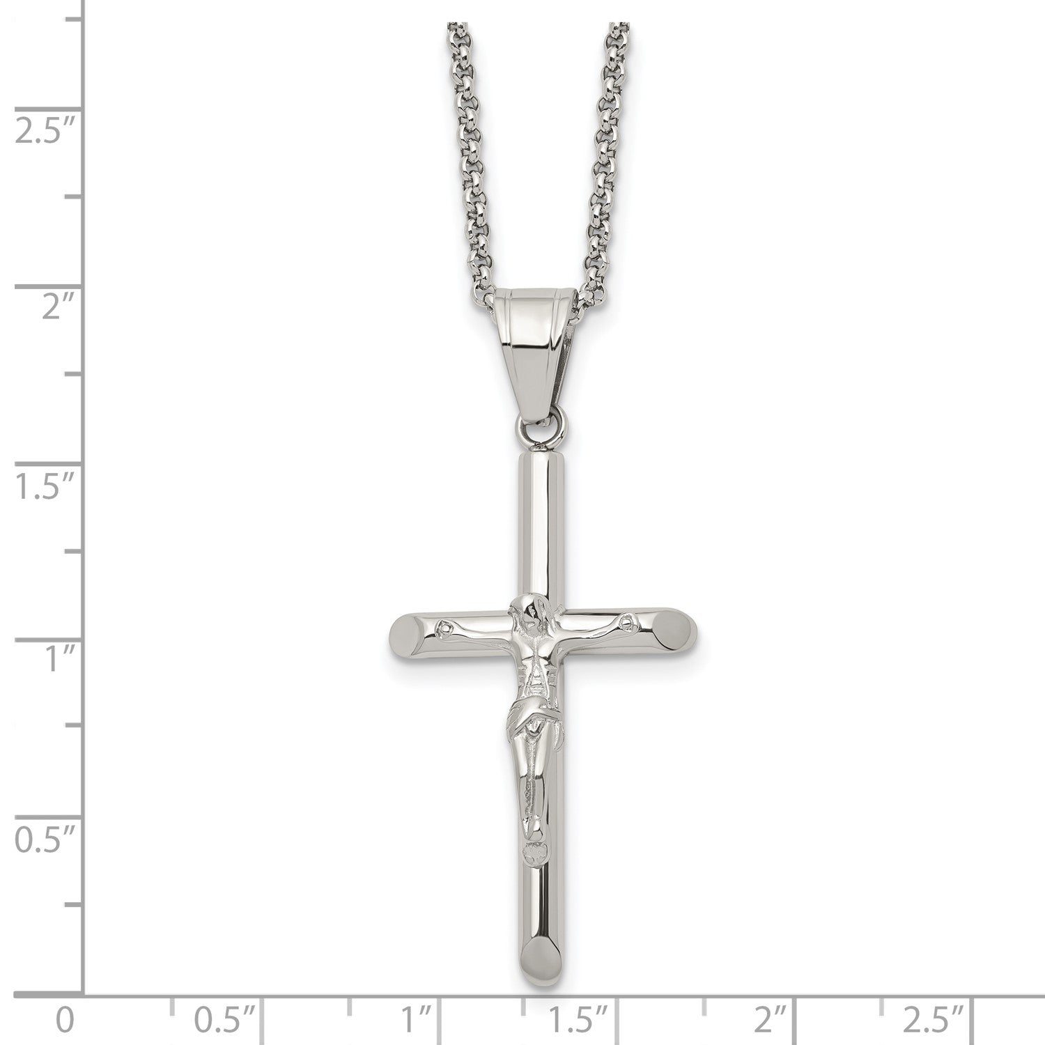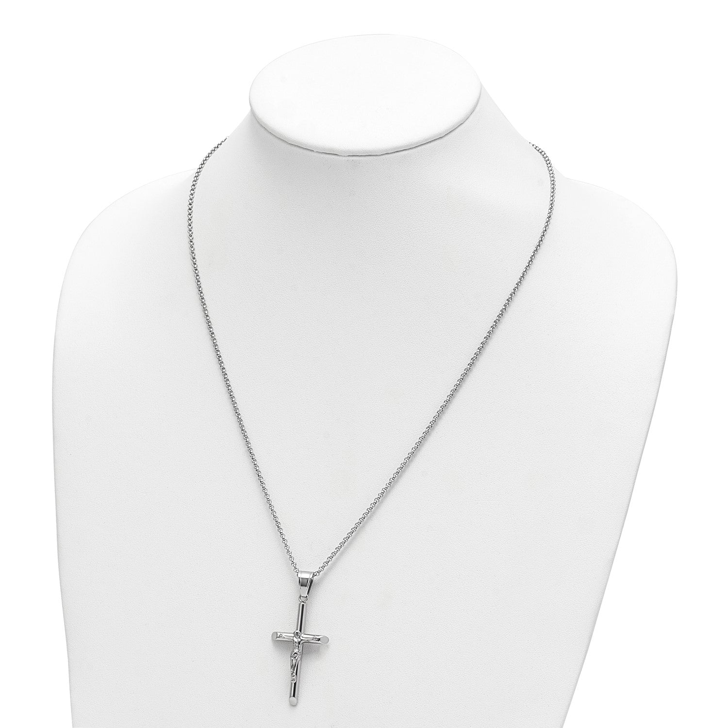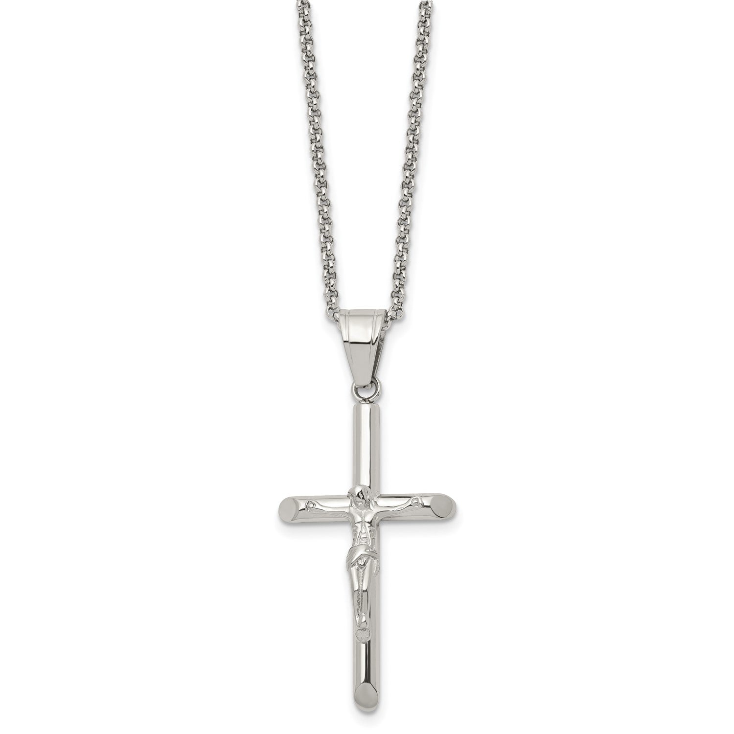 MJ Stainless Steel Polished Crucifix Pendant on a 22 inch Rolo Chain Necklace