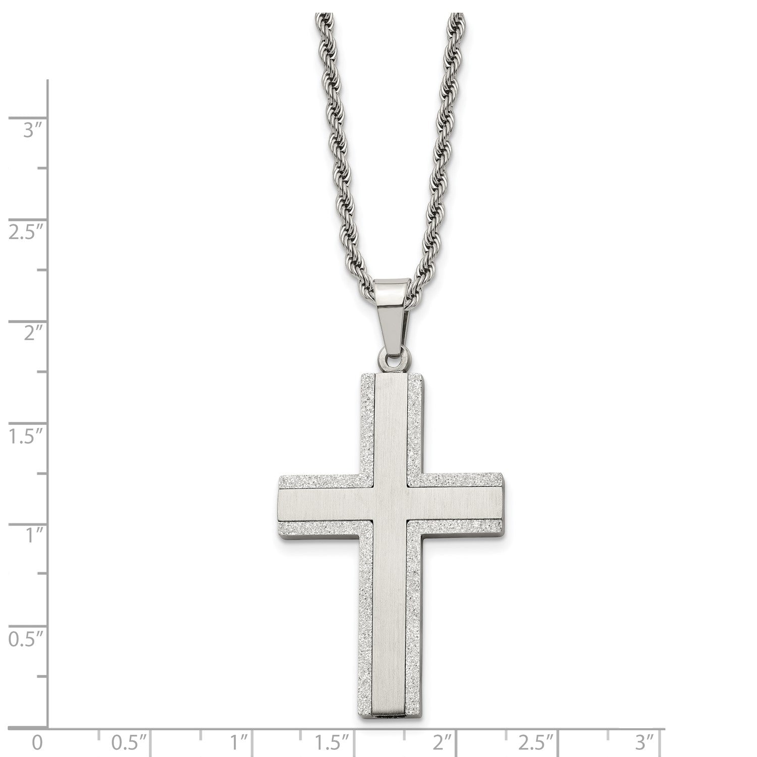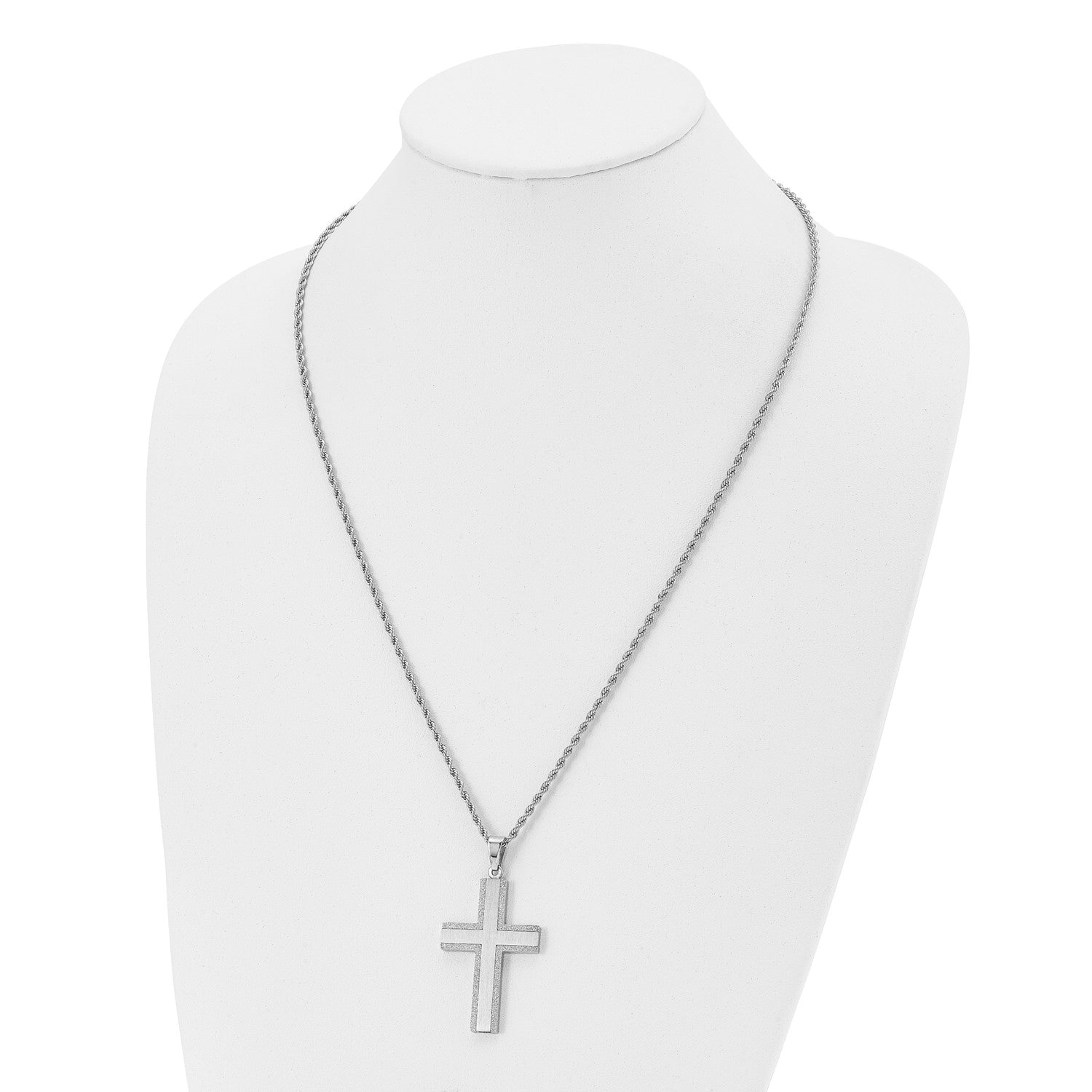 MJ Stainless Steel Polished Laser Cut Edges Cross Pendant on a 24 inch Rope Chain Necklace