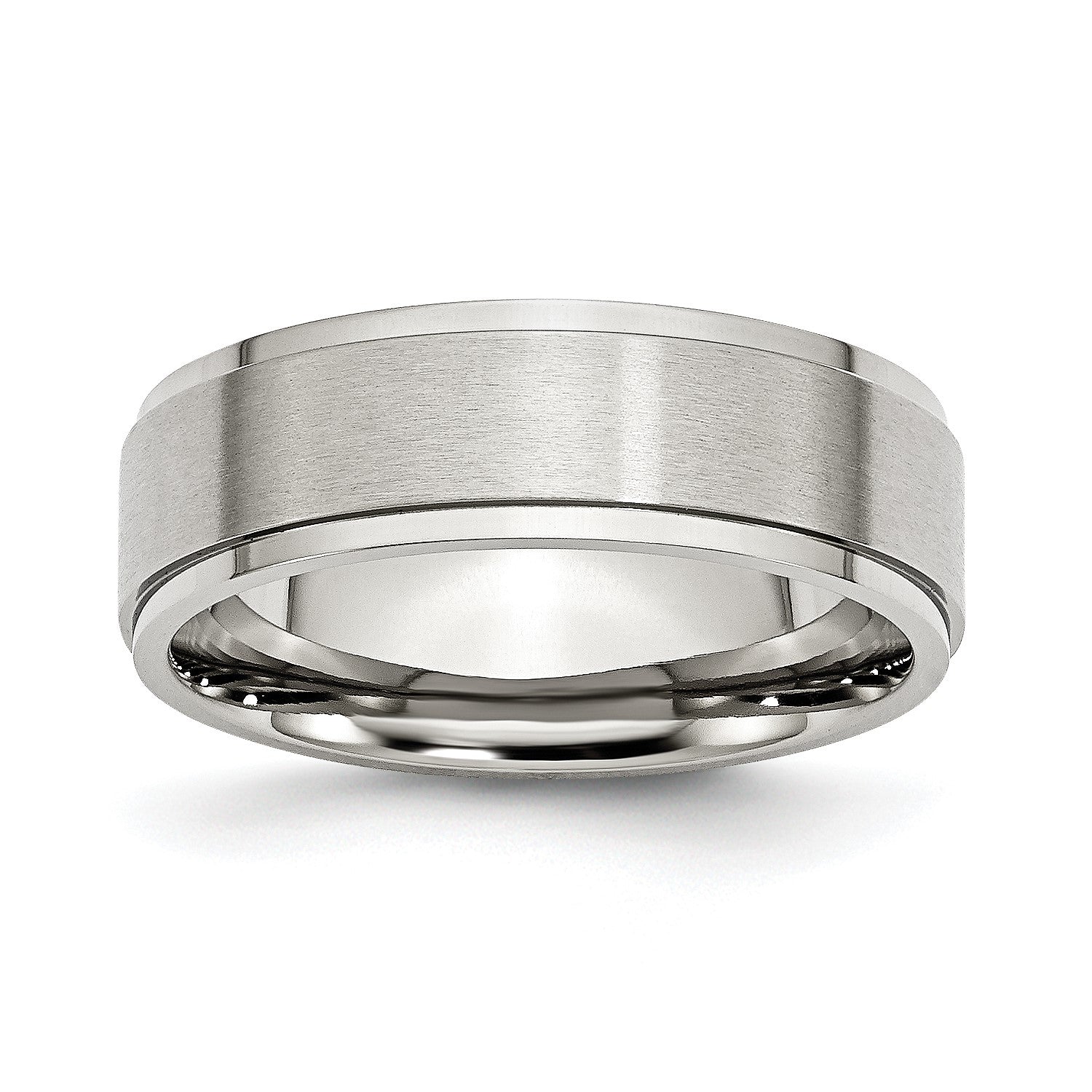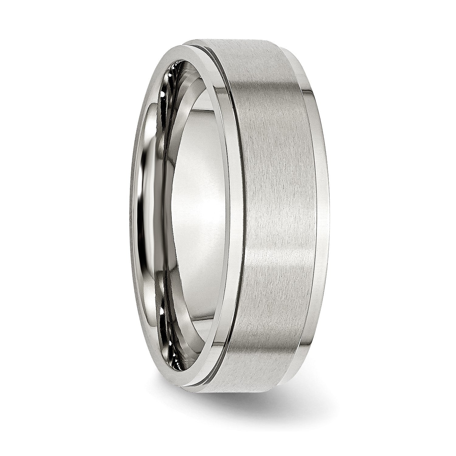MJ Stainless Steel Polished with Brushed Center 7mm Ridged Edge Band