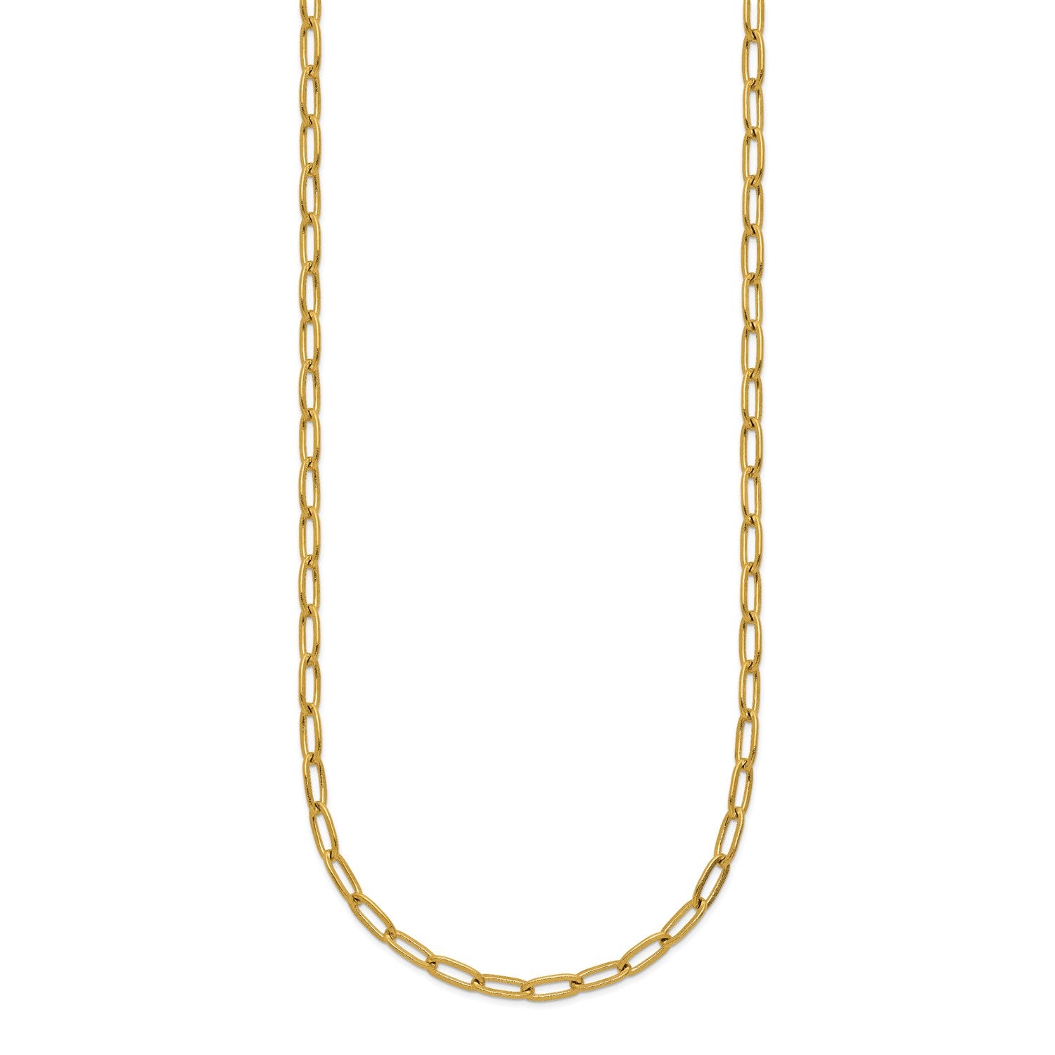 MJ Stainless Steel Polished Yellow IP-plated Elongated Open Link Paperclip 15 inch Necklace with 2 inch Extension
