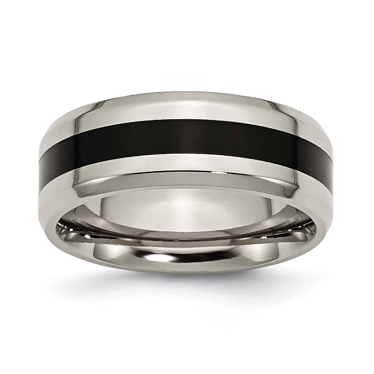 MJ Titanium Polished Black Enamel 8mm Beveled Edge Band