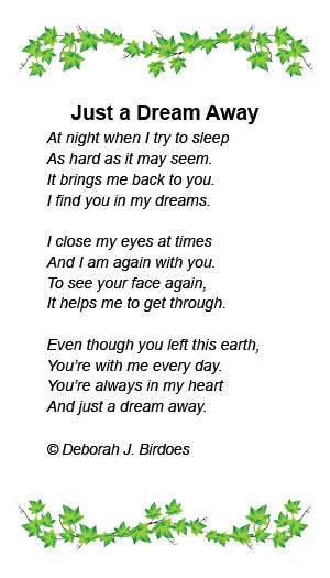 * A Poem, which is a reminder of the place Your Loved One held in Your Heart. The Verses will help You put your thoughts & feelings into words, at a time when words do not seem enough.