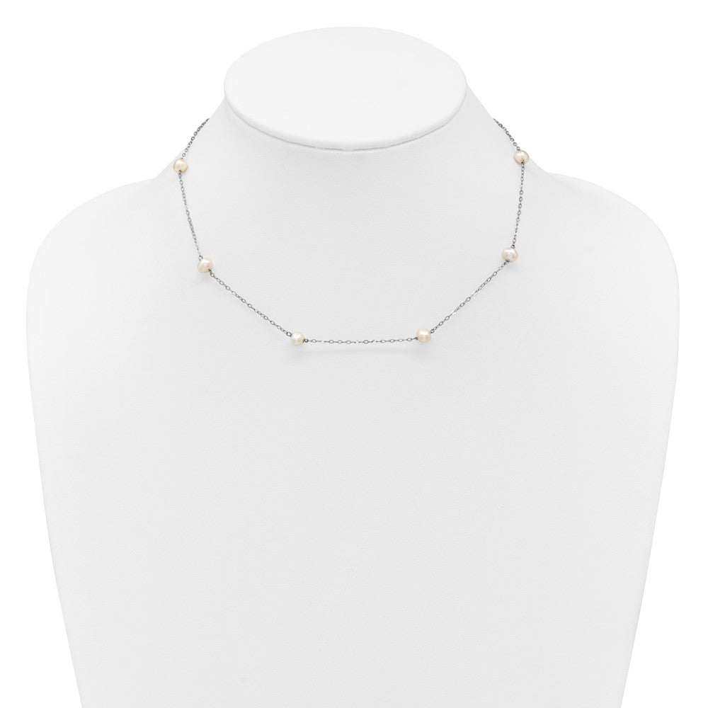 14K White Gold 4-5mm White Near Round Freshwater Cultured Pearl 8-station 18 inch Necklace