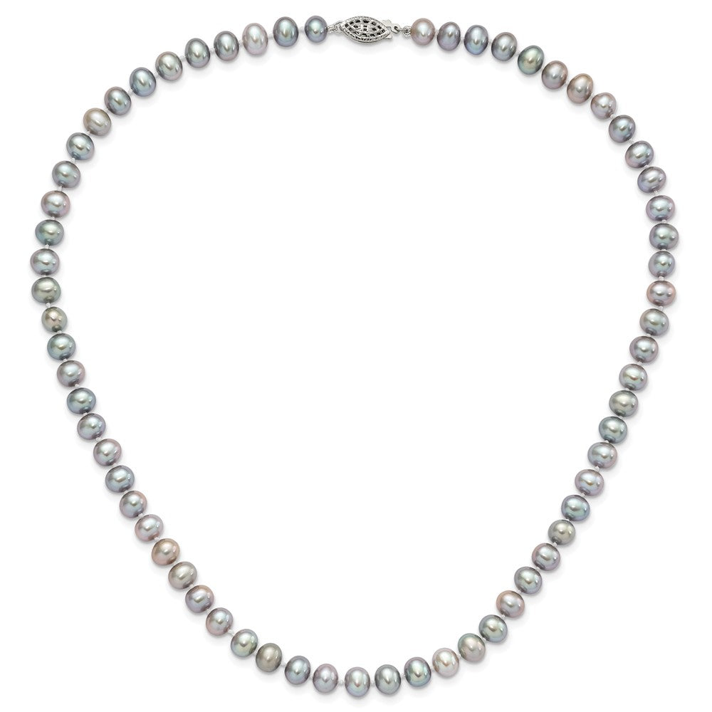 Sterling Silver Rhodium-plated 6-7mm Grey Near-Round Freshwater Cultured Pearl 18 inch Necklace