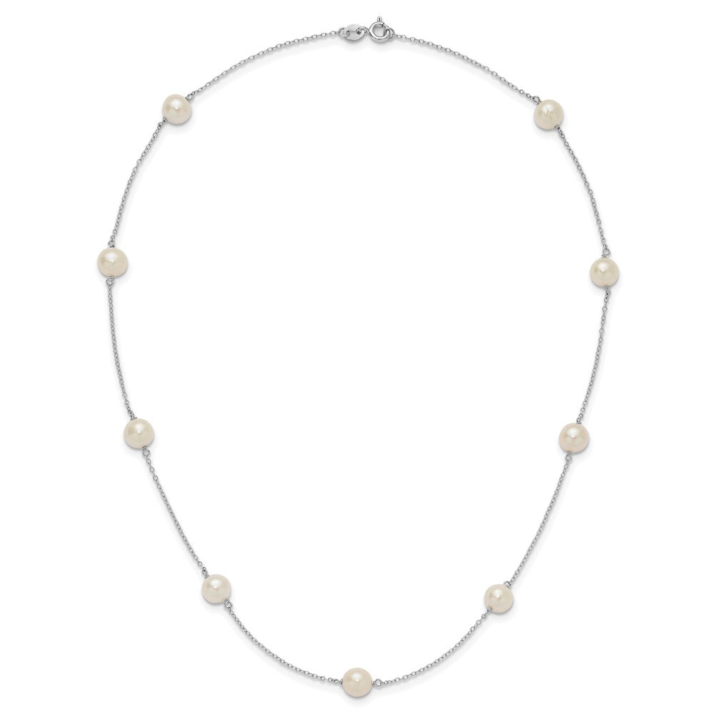 Sterling Silver Rhodium-plated 7-8mm White Near-Round Freshwater Cultured Pearl 9-Stations18 inch Necklace