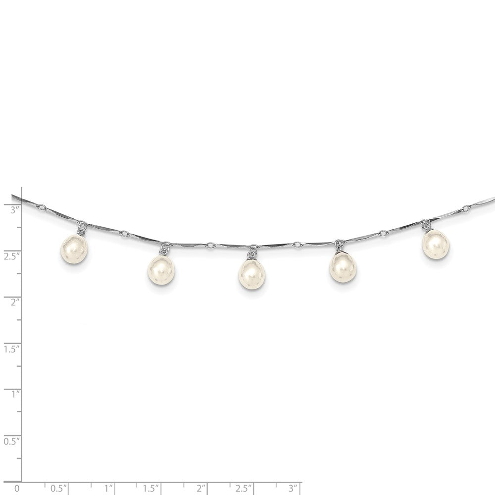 PSSN Sterling Silver Rhodium-plated 7-8mm White Teardrop Freshwater Cultured Pearl 7-Station 17.5 inch Necklace