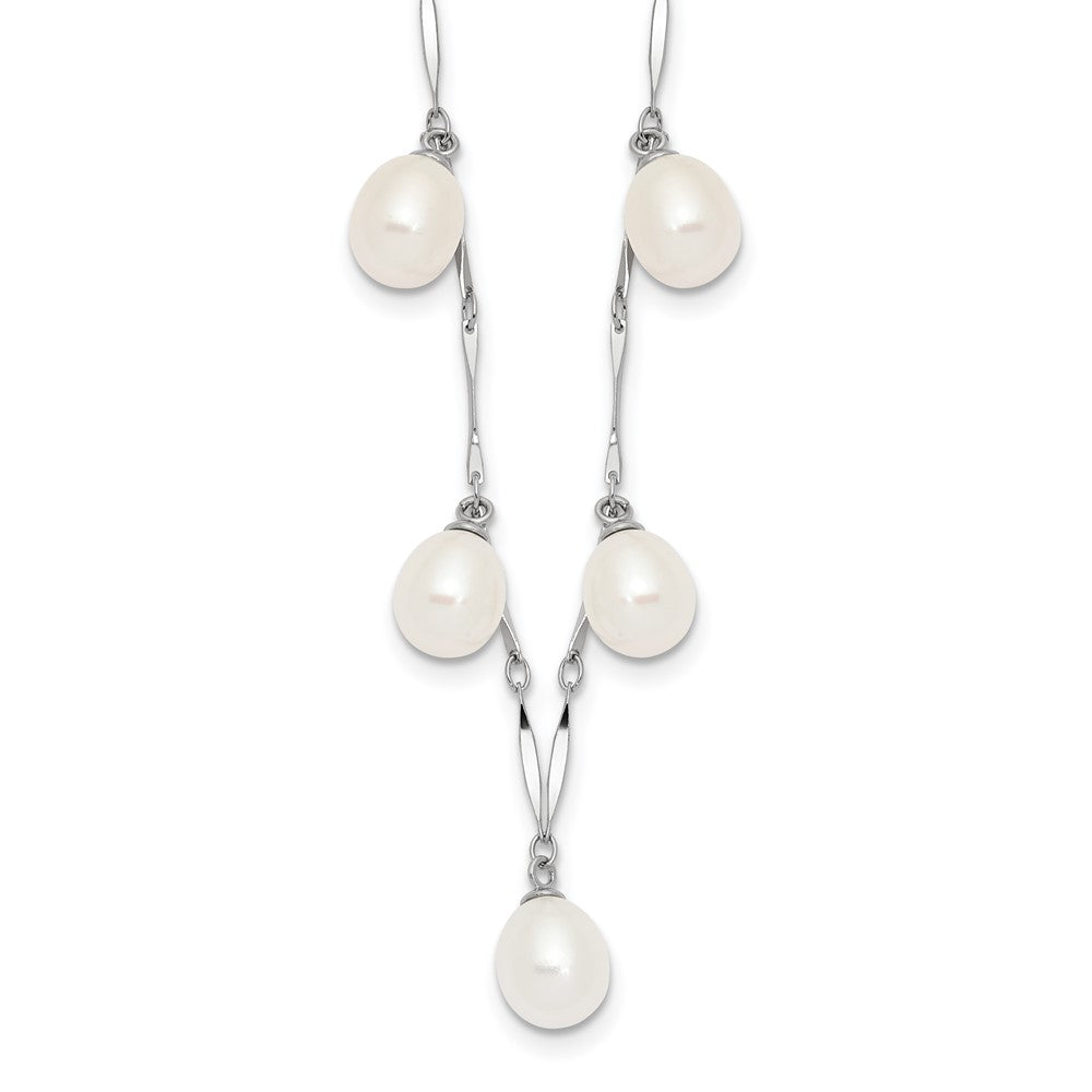 Sterling Silver Rhodium-plated 7-8mm White Teardrop Freshwater Cultured Pearl 7-Station 17.5 inch Necklace