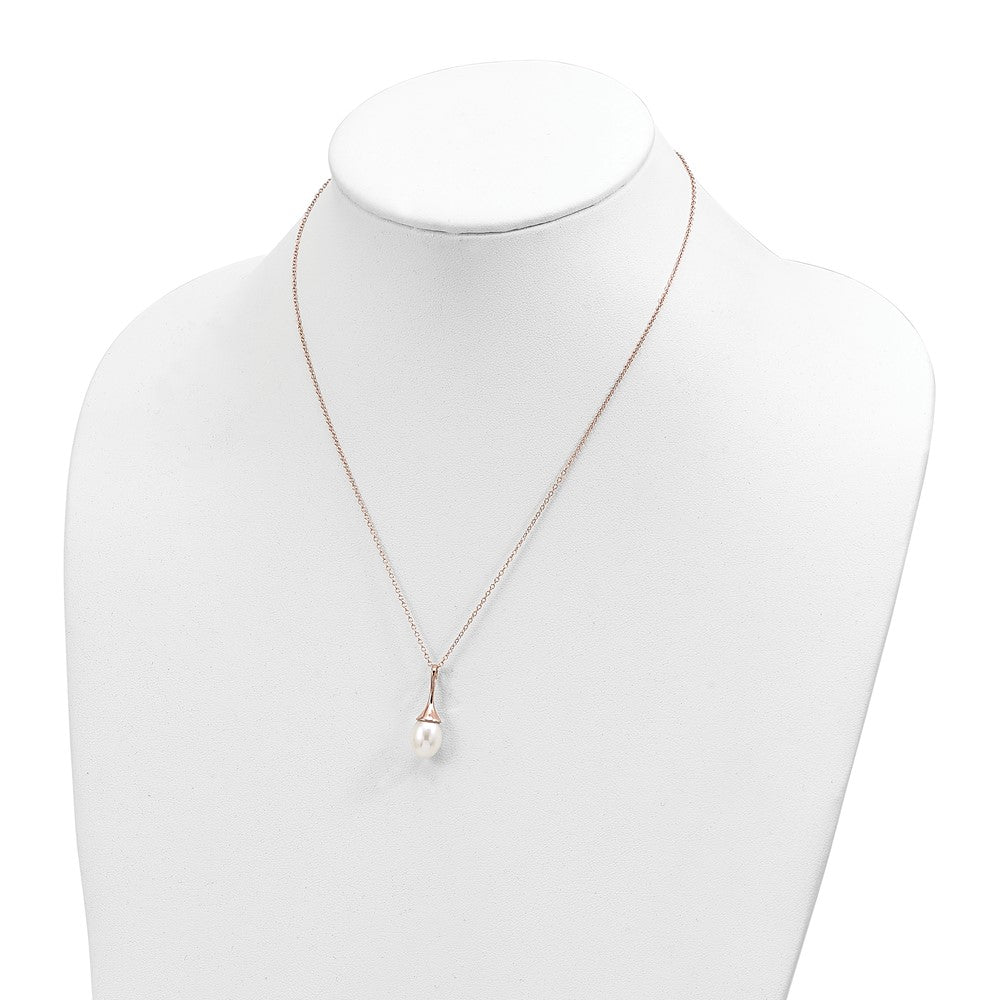 PSSN Sterling Silver Rose-tone 8-9mm White Teardrop Freshwater Cultured Pearl 17 inch Necklace