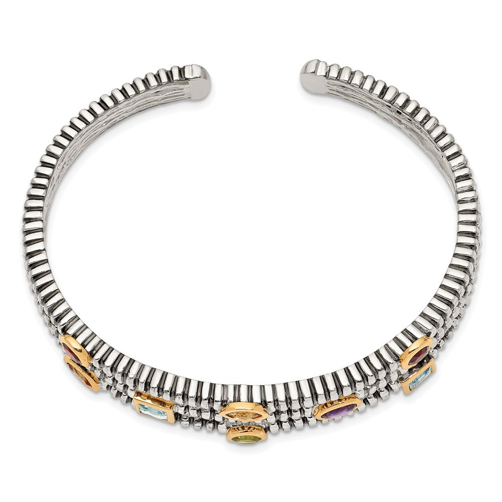 GSSB Sterling Silver with 14K Accent Antiqued Bezel .36Amethyst/.55Blue Topaz/.18Citrine/.35Garnet/.30Peridot Cuff Bracelet