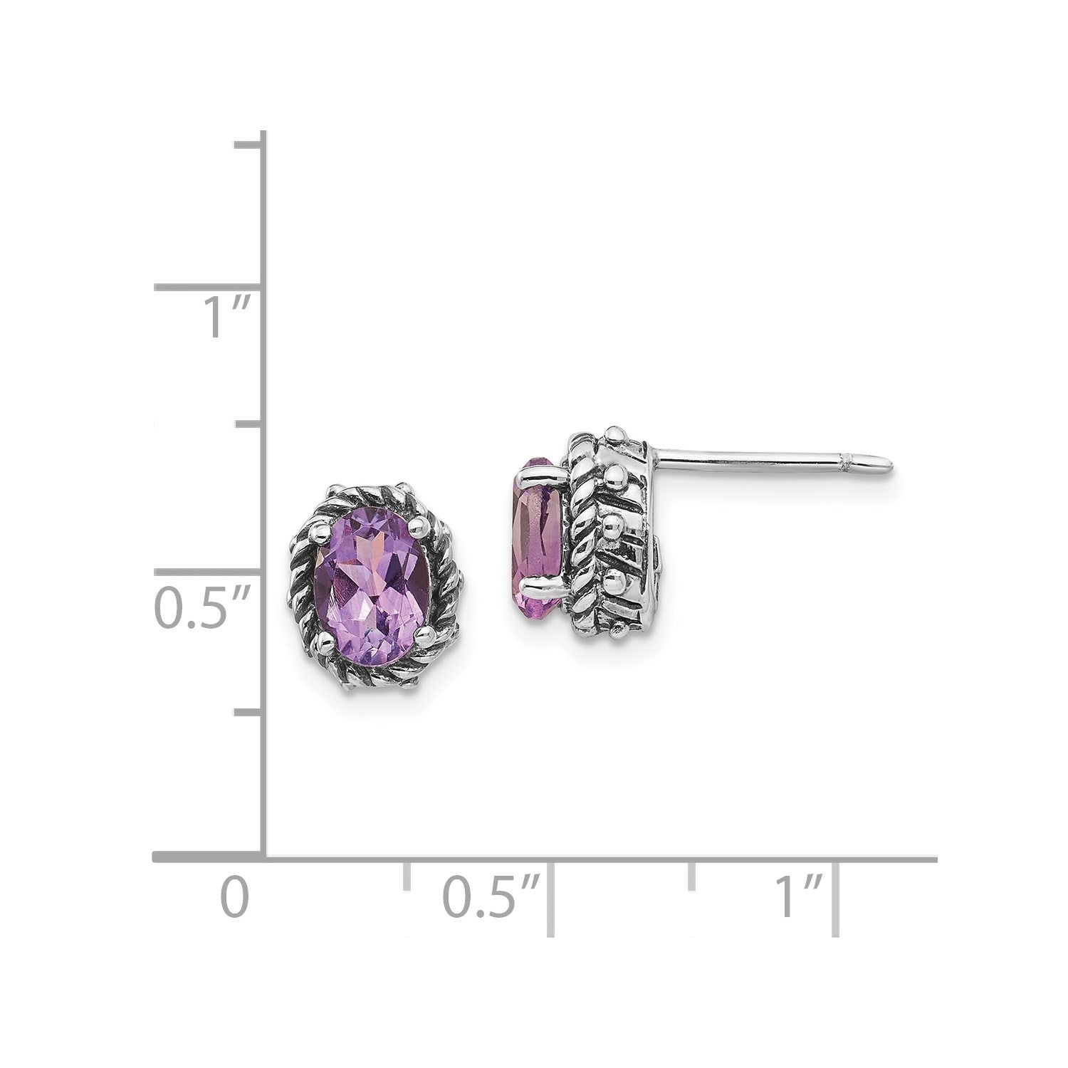 GSS Sterling Silver Antiqued Oval Amethyst Post Earrings
