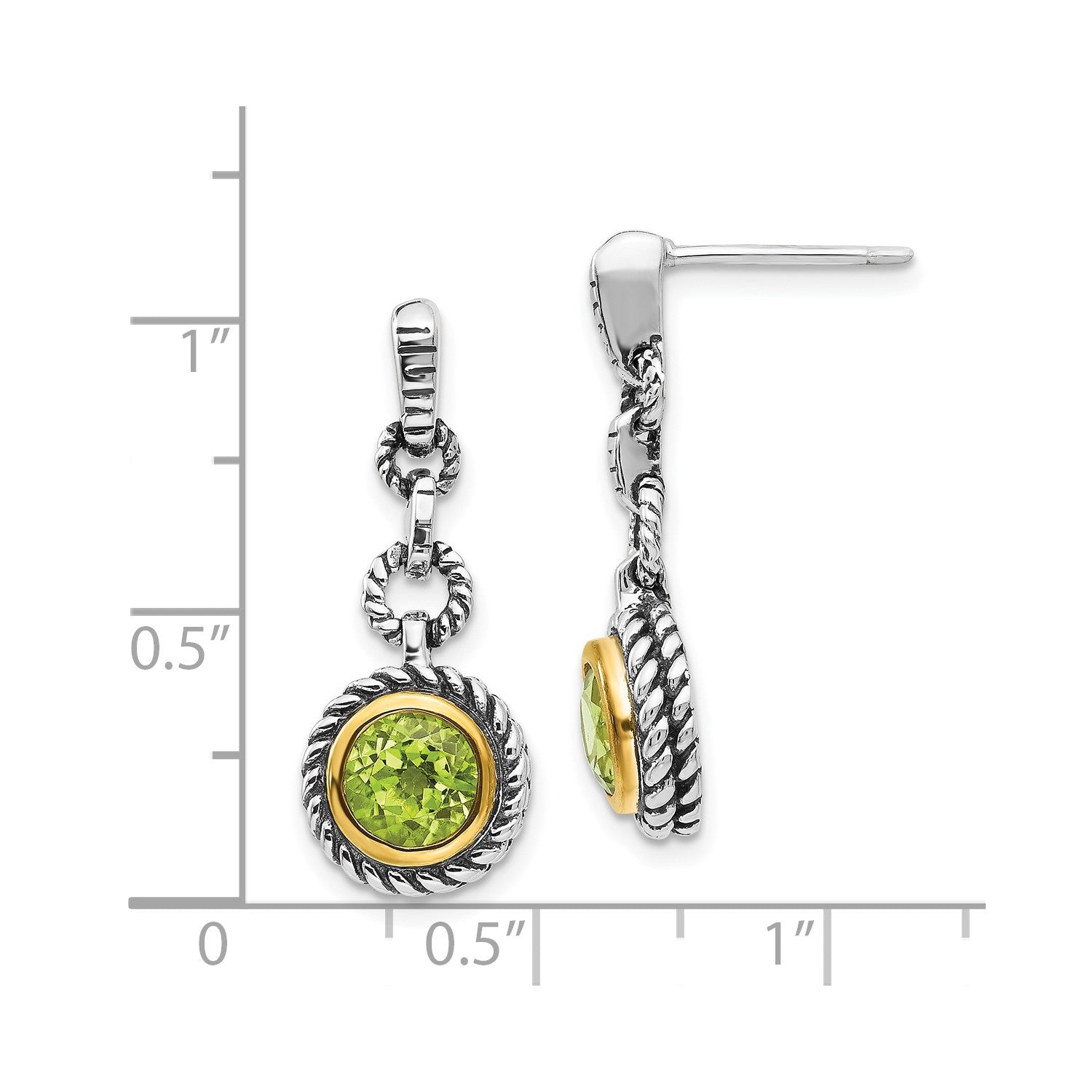 GSS Sterling Silver Gold-tone Flash Gold-plated Antiqued Round Bezel Peridot Post Dangle Earrings