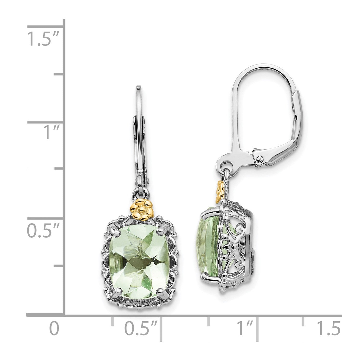 GSS Sterling Silver Rhodium-plated with 14K Accent Cushion Green Quartz Leverback Earrings