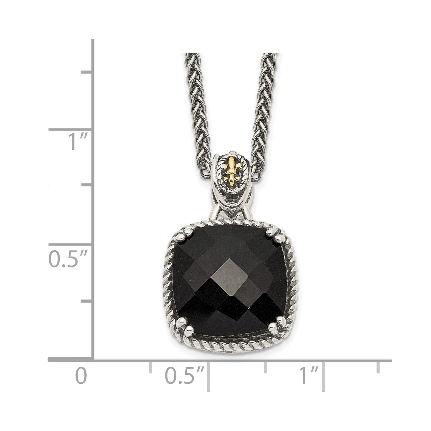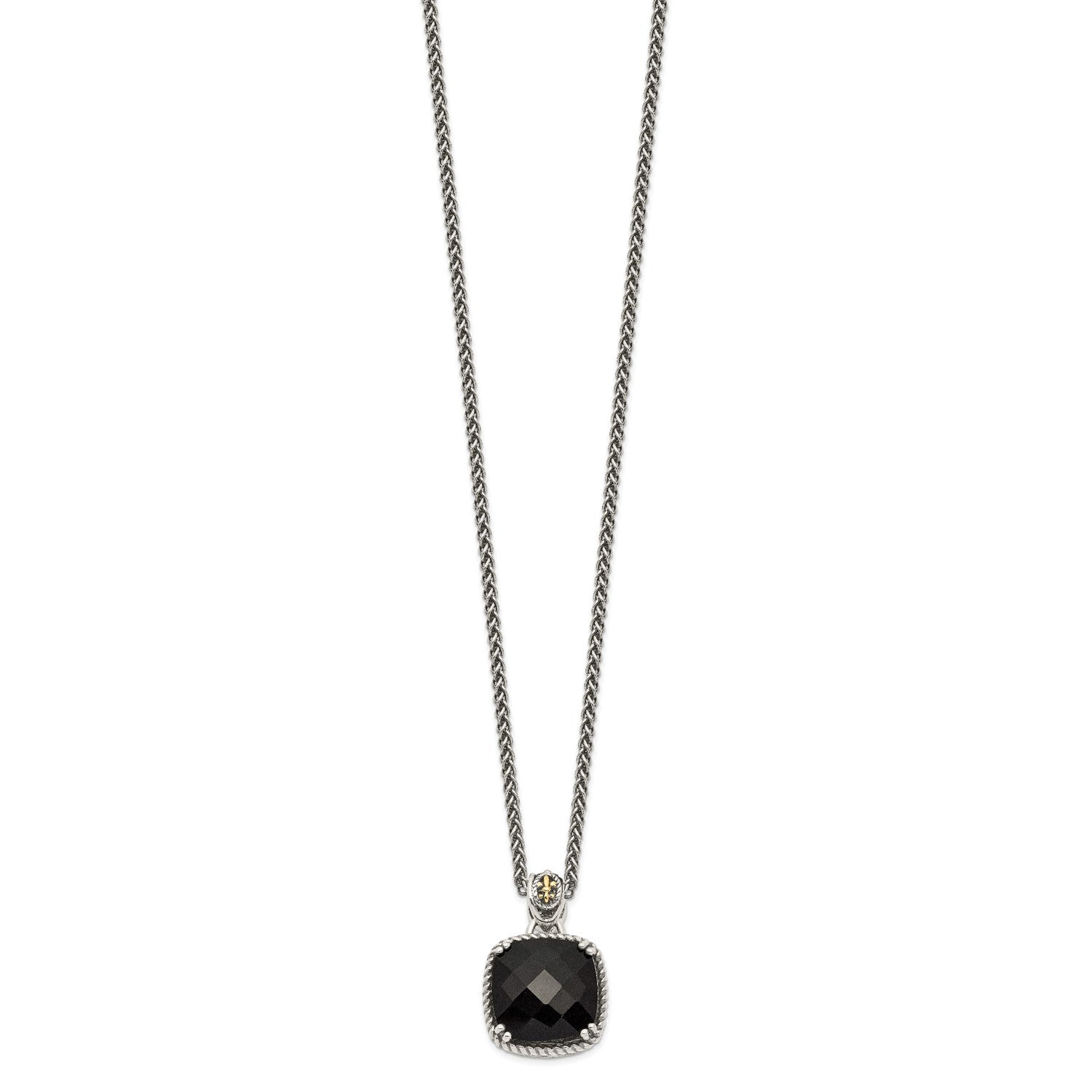 GSS Sterling Silver with 14K Accent 18 Inch Antiqued Checkerboard-cut Black Onyx Necklace