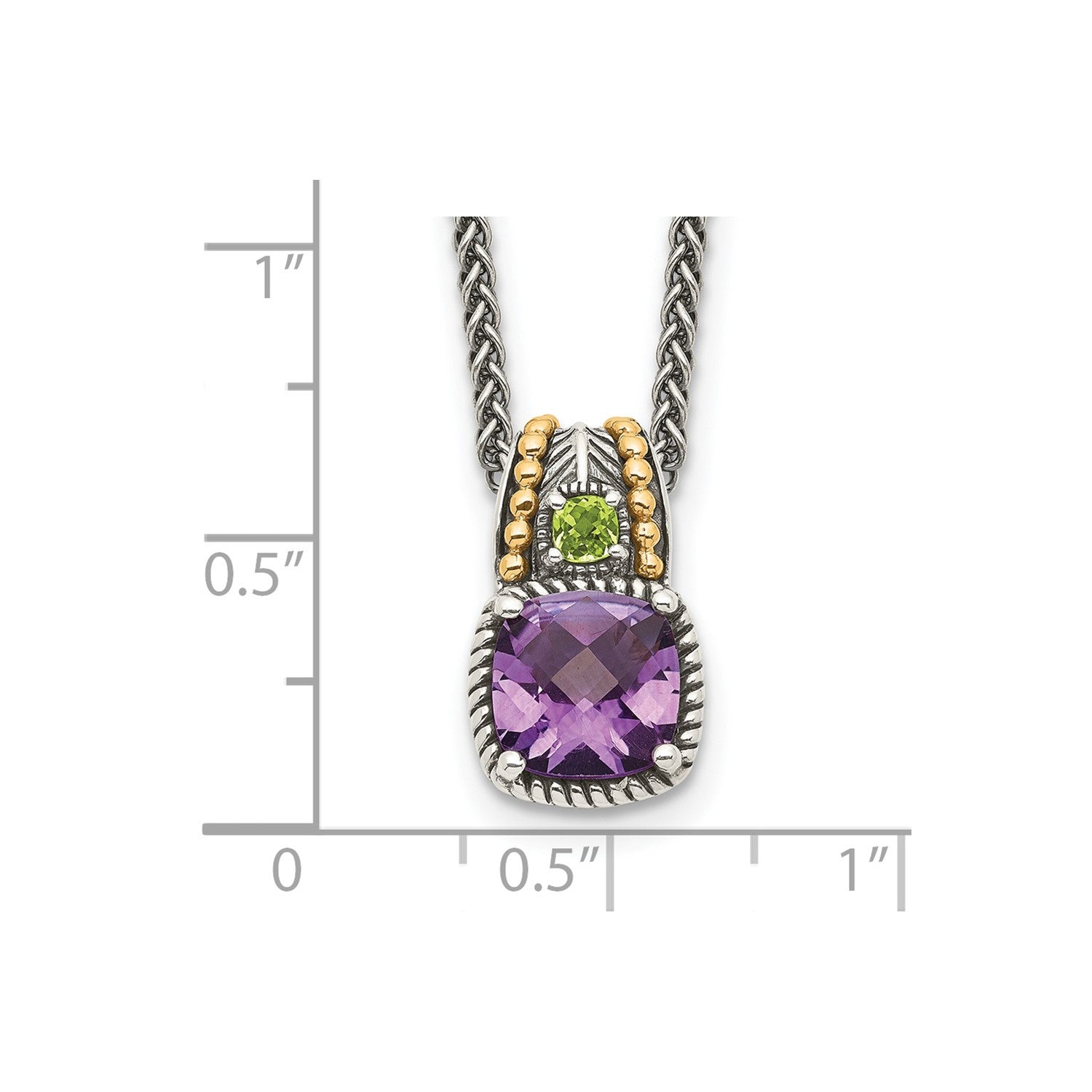 GSS Sterling Silver with 14K Accent 18 Inch Antiqued Cushion 1.85 Amethyst and .21 Peridot Necklace