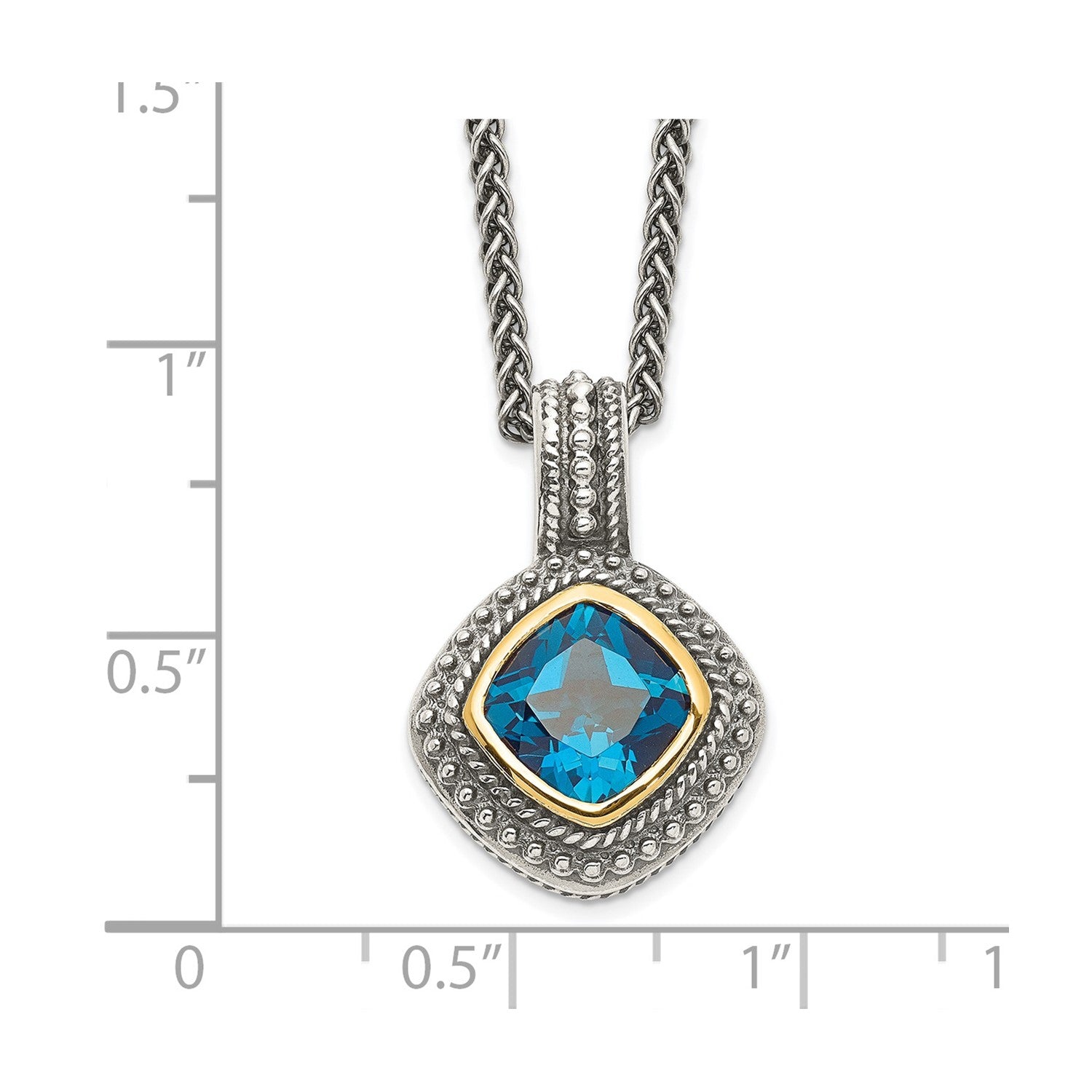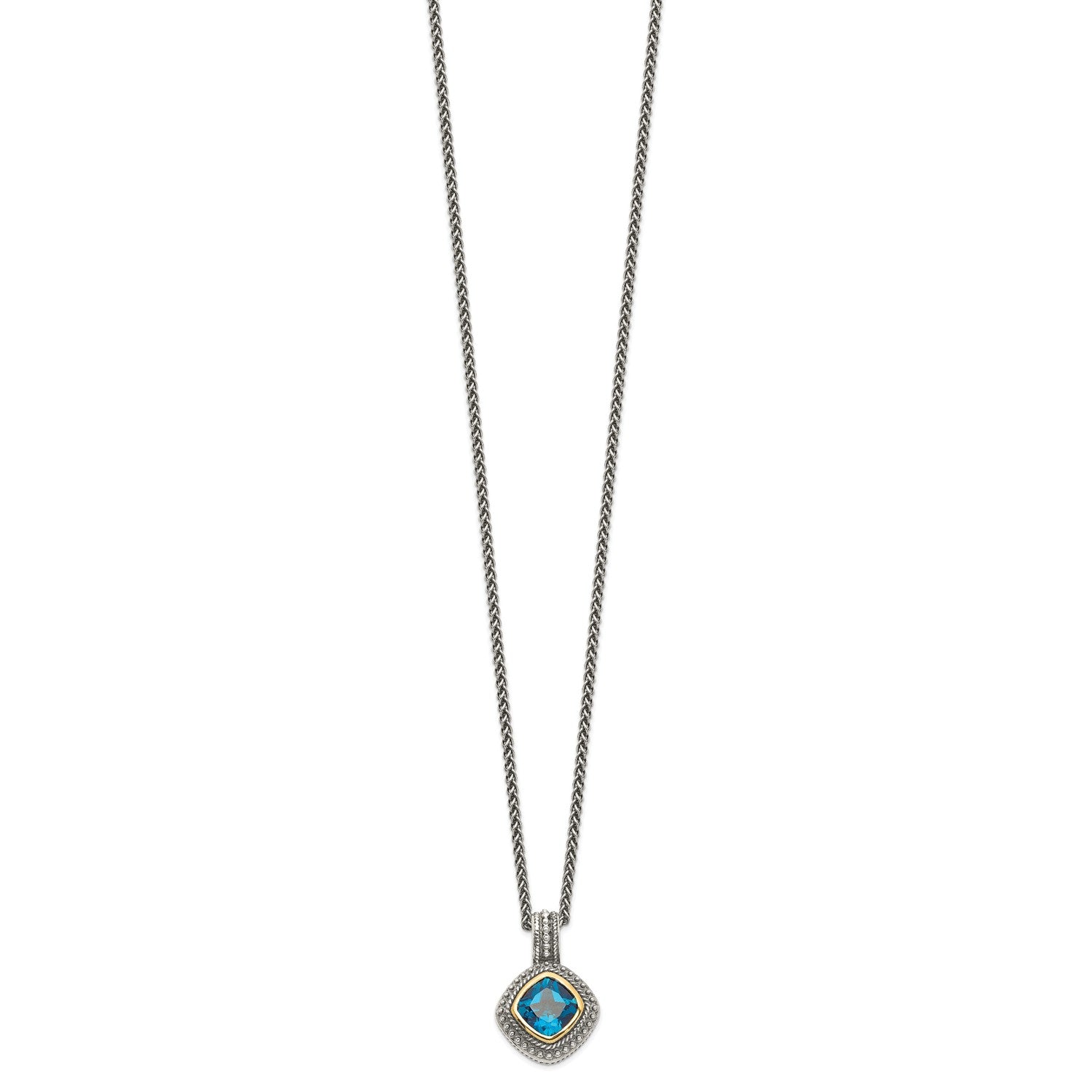 GSS Sterling Silver with 14K Accent 18 Inch Antiqued Cushion Bezel London Blue Topaz Necklace