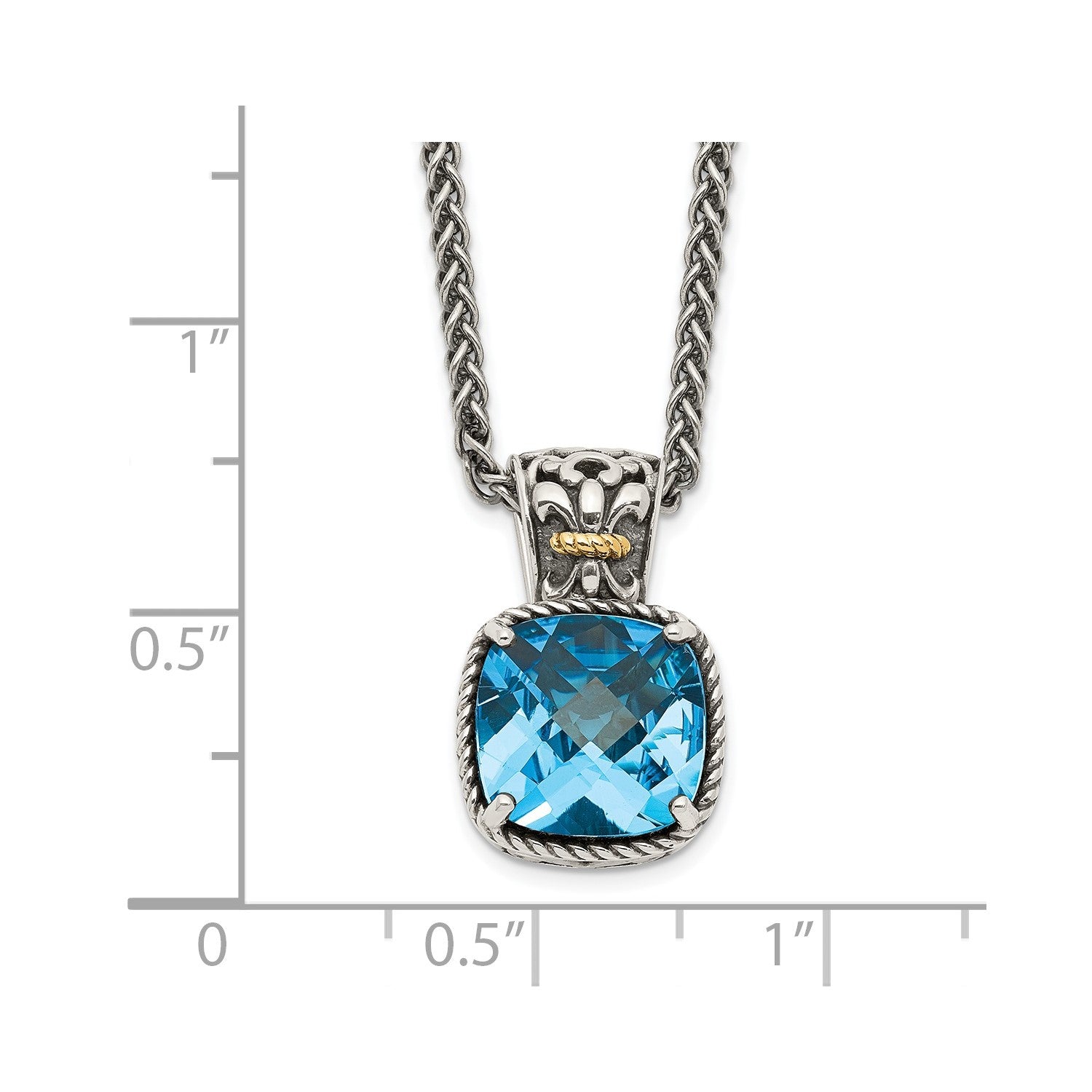 GSS Sterling Silver with 14K Accent 18 Inch Antiqued Cushion Blue Topaz Necklace