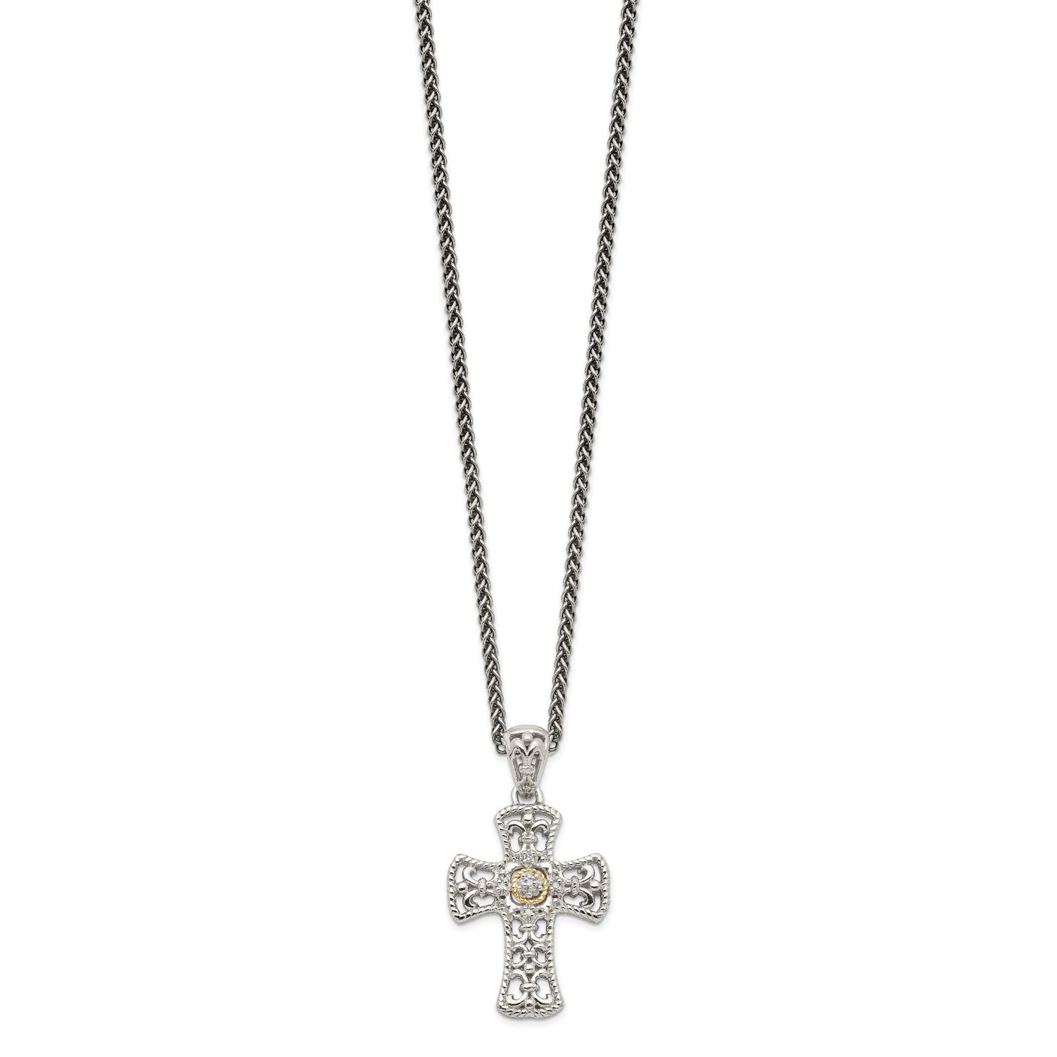 DSS Sterling Silver with 14K Accent 18 Inch Diamond Cross Necklace