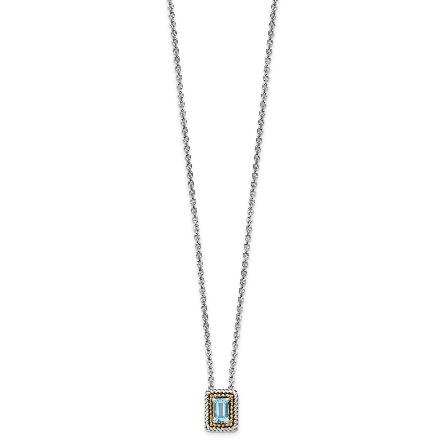 GSS Sterling Silver with 14K Accent 18 Inch Emerald-cut Antiqued Light Swiss Blue Topaz Necklace