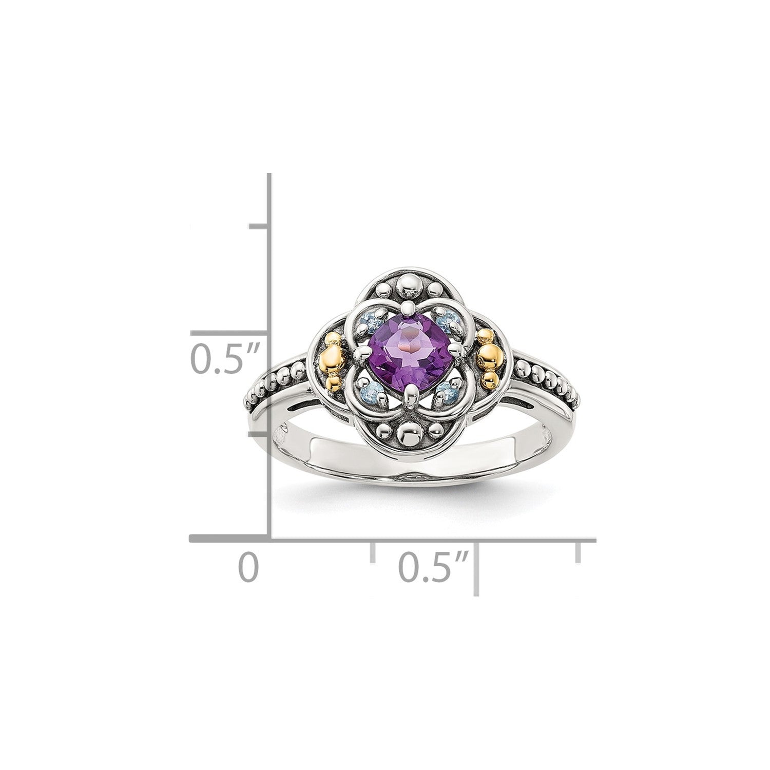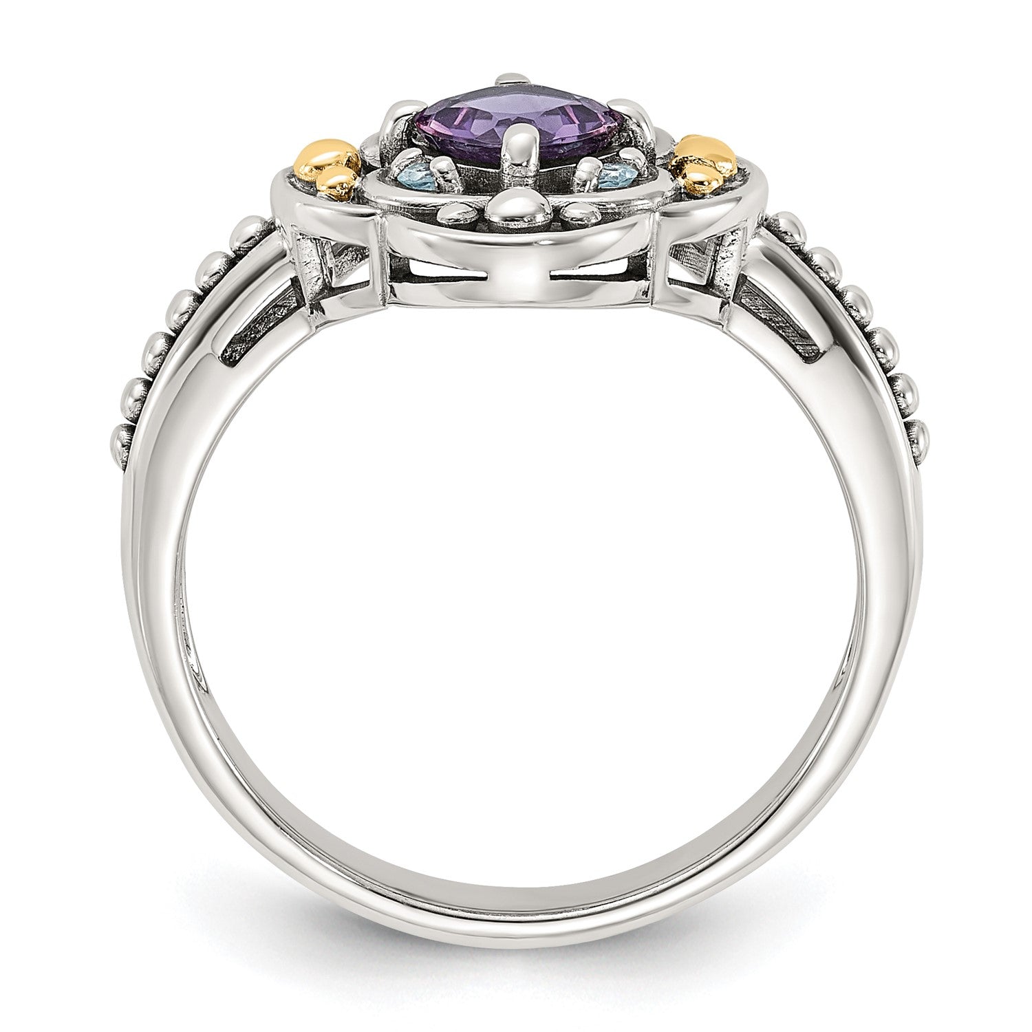 GSS Sterling Silver with 14k Accent Antiqued .41 Amethys / .09Swiss Blue Topaz Ring