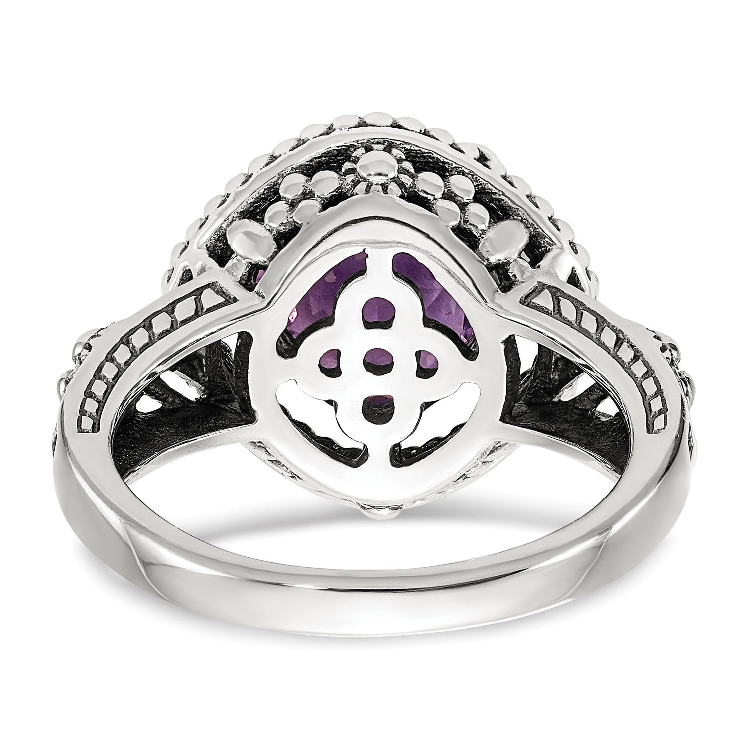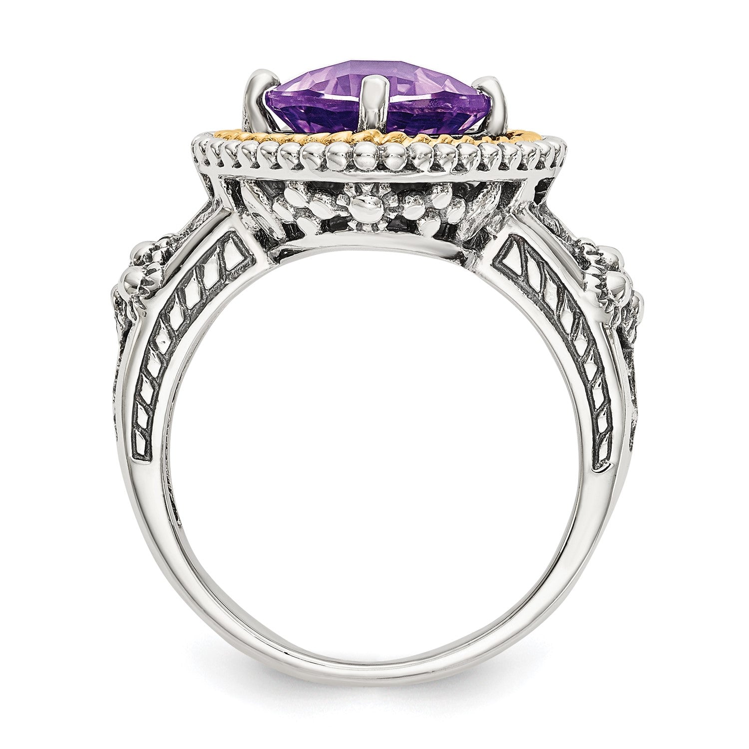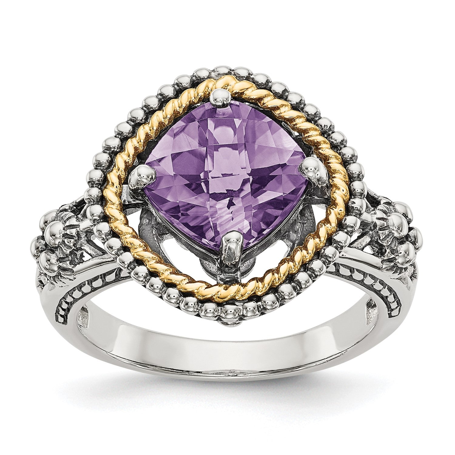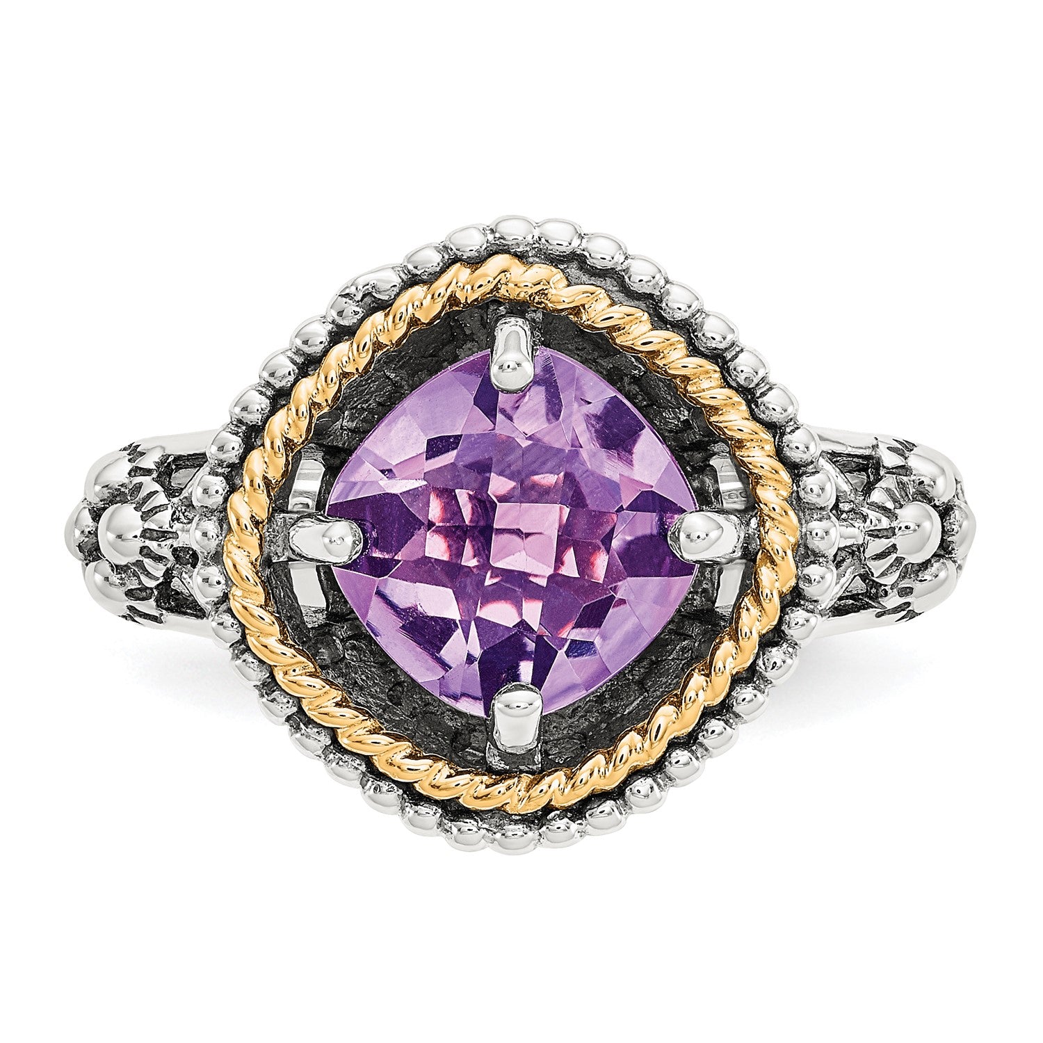 GSS Sterling Silver with 14K Accent Antiqued Checkerboard-cut Cushon Amethyst Ring