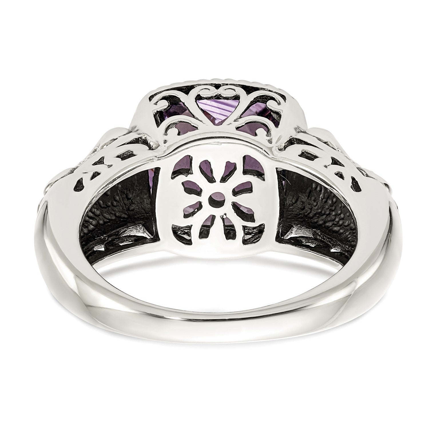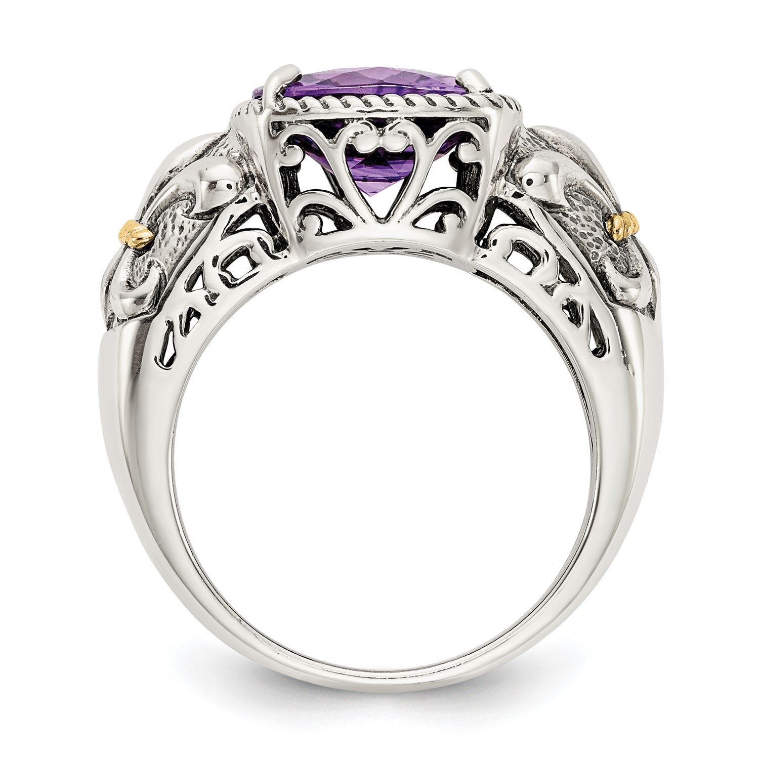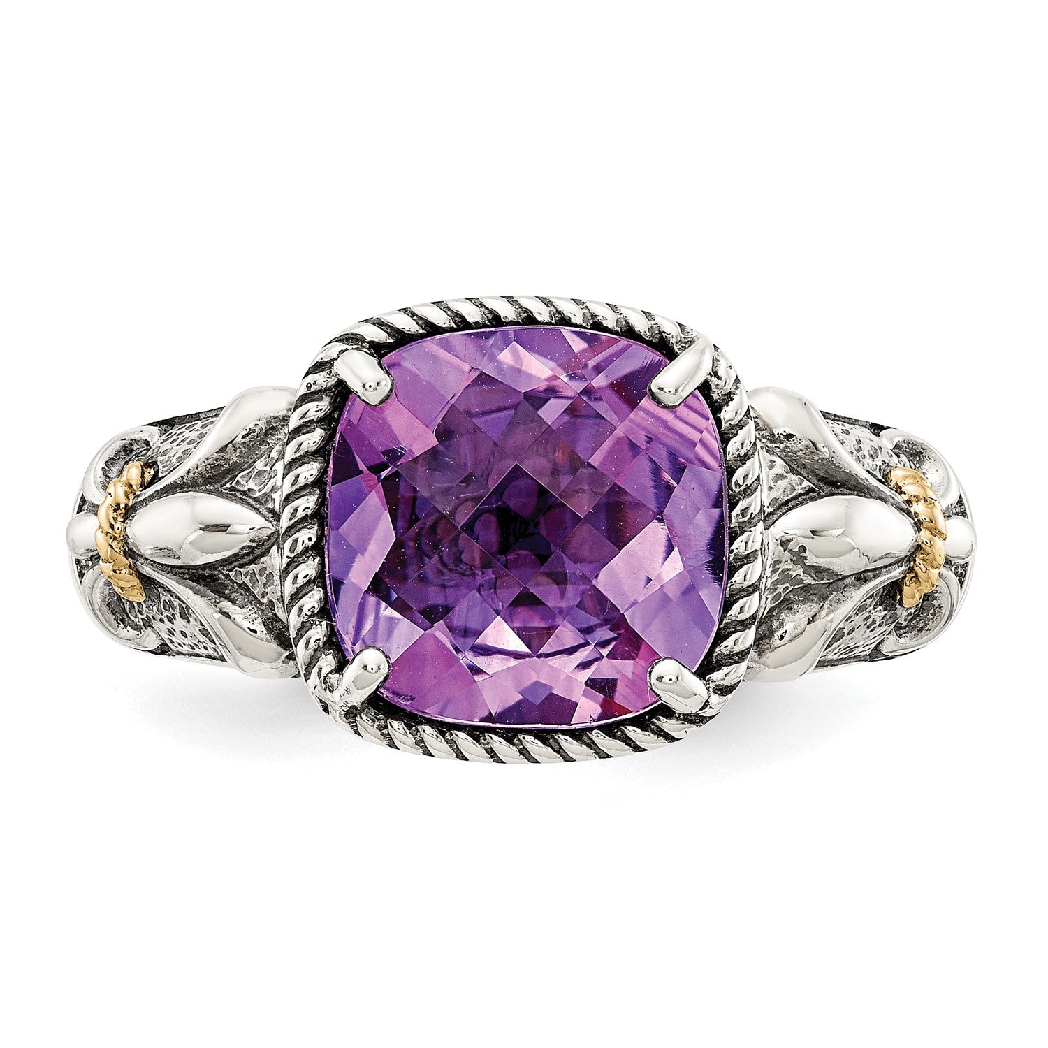 GSS Sterling Silver with 14K Accent Antiqued Cushion Amethyst Ring