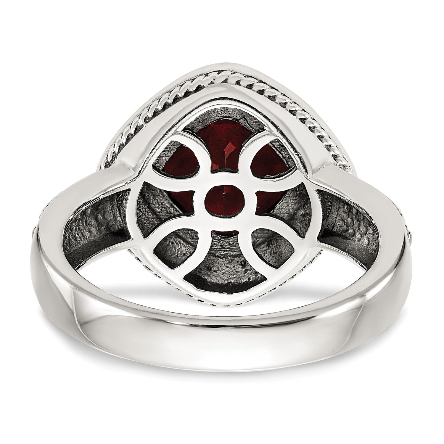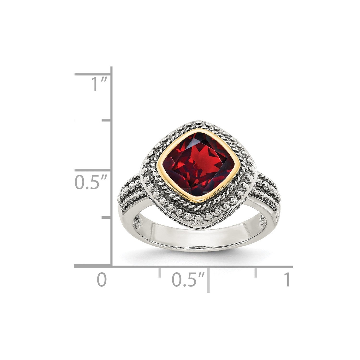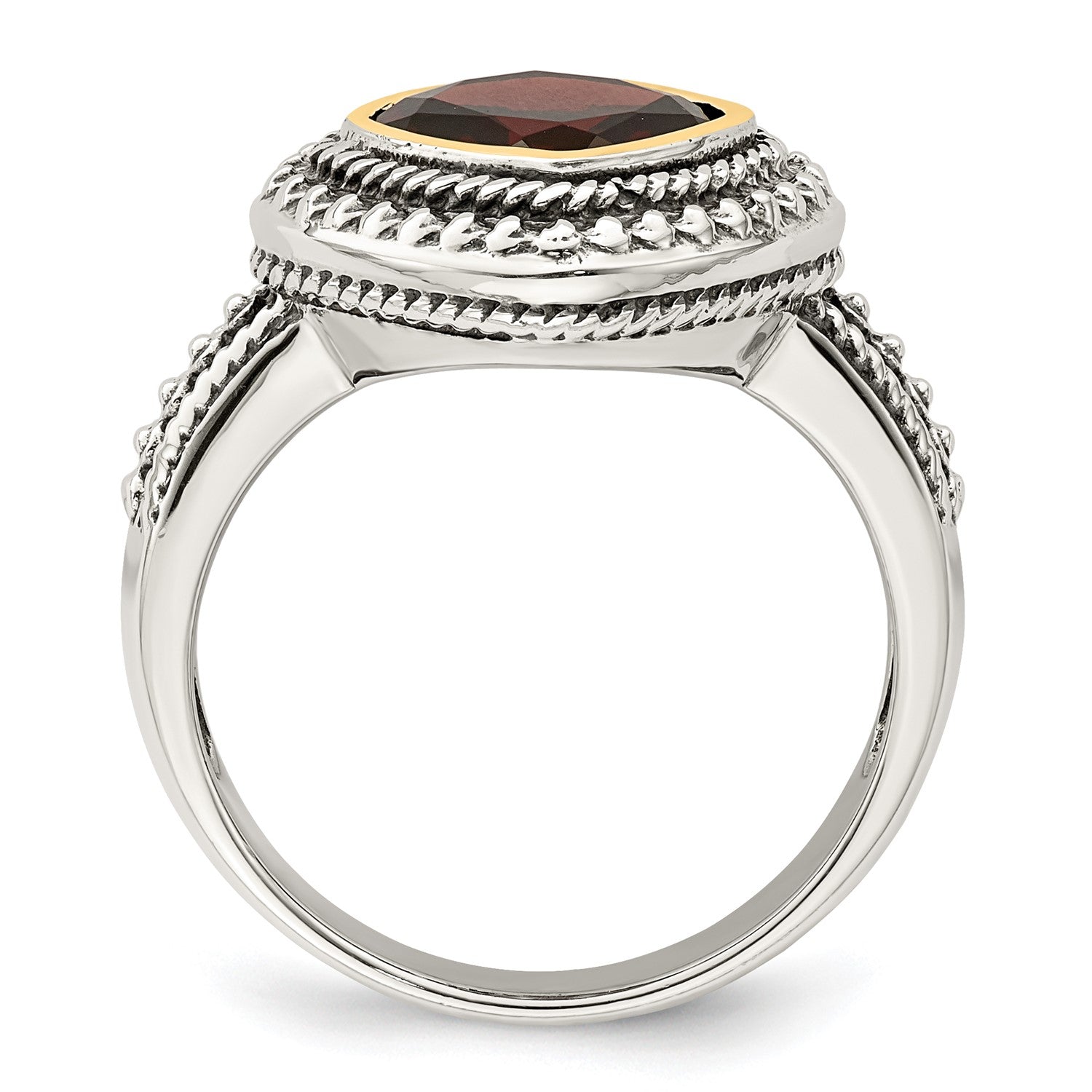 GSS Sterling Silver with 14K Accent Antiqued Cushion Bezel Garnet Ring