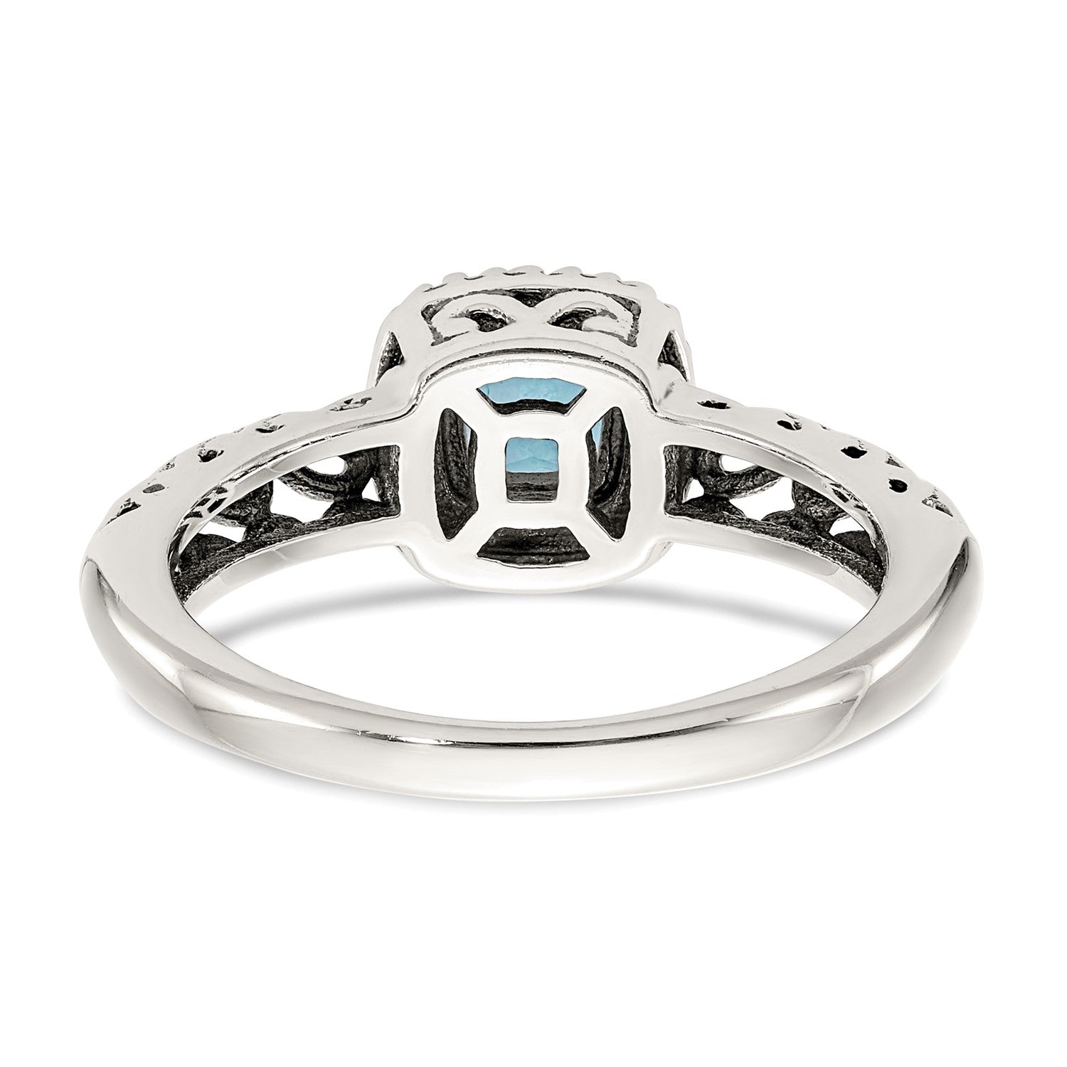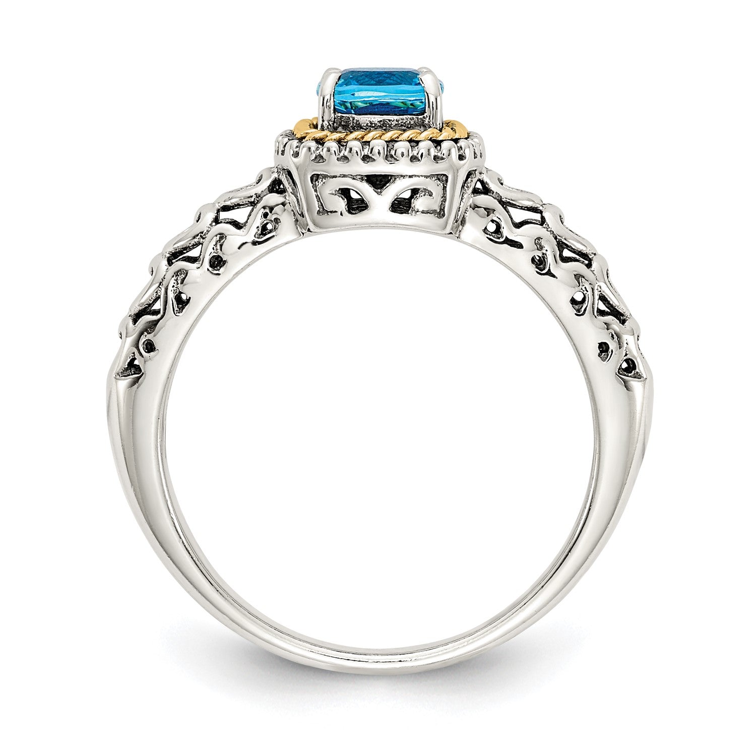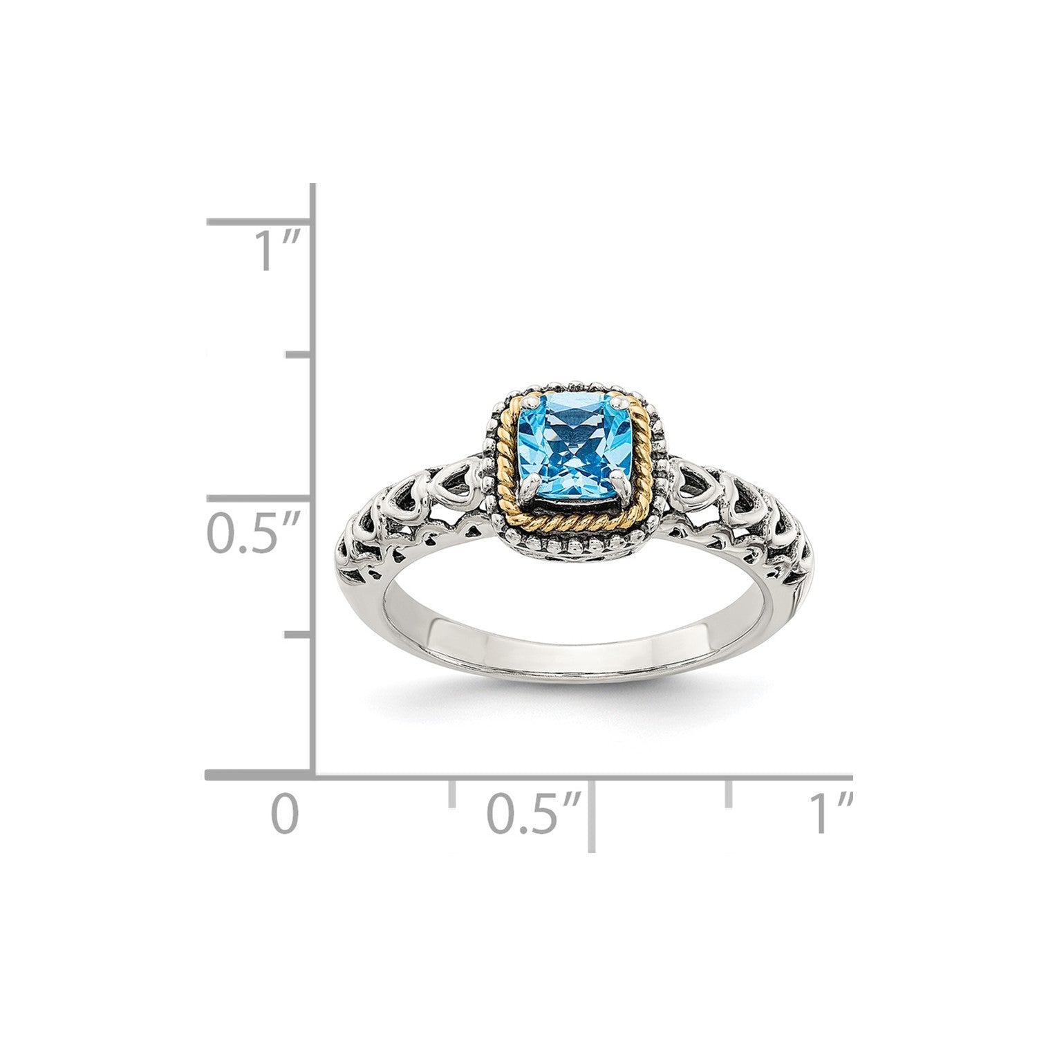 GSS Sterling Silver with 14K Accent Antiqued Cushion Blue Topaz Ring