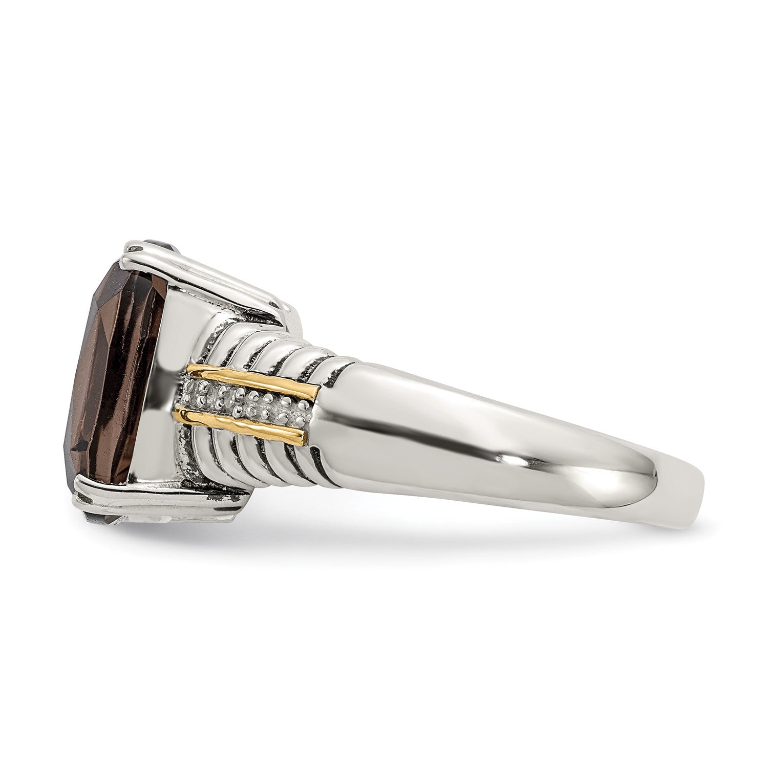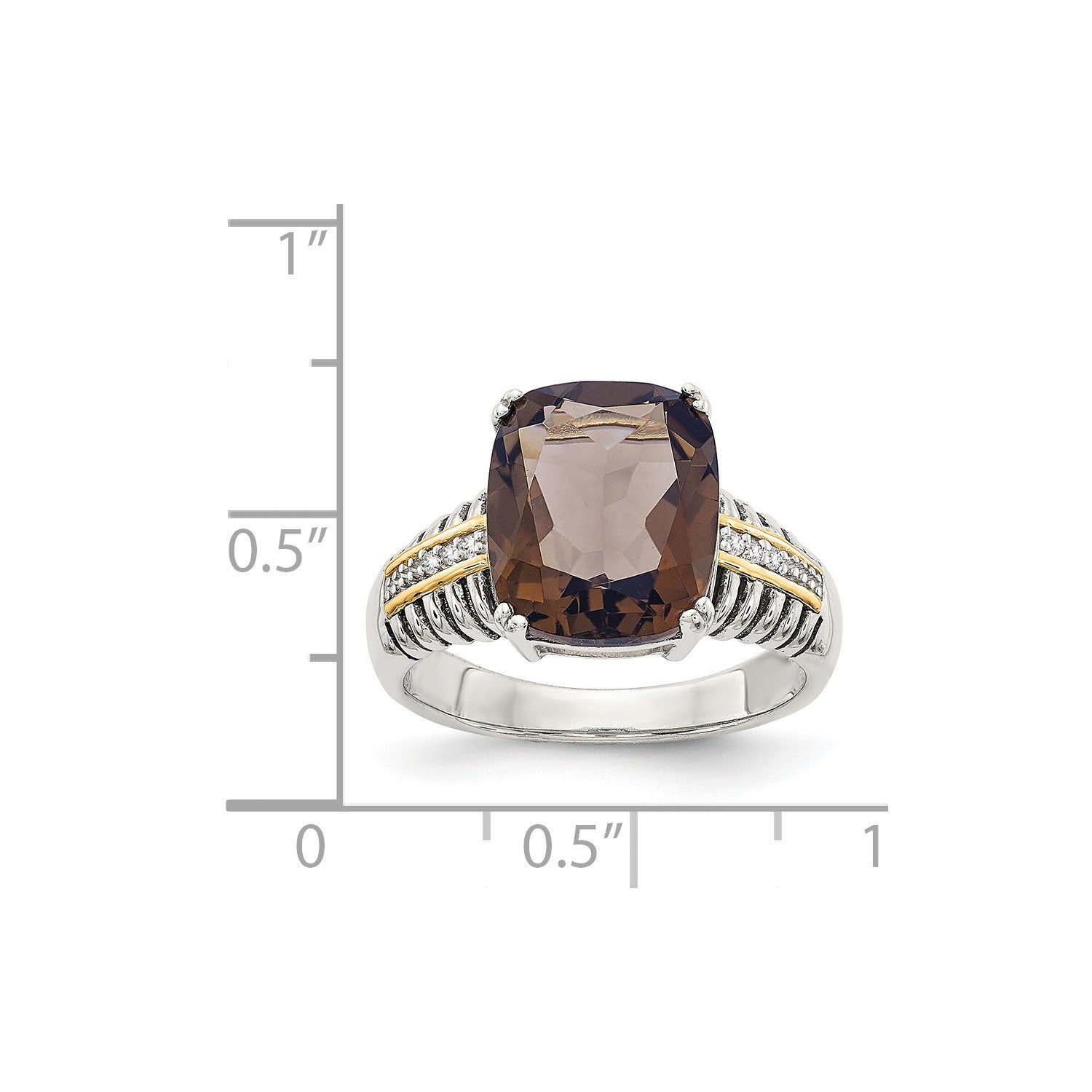 GSS Sterling Silver with 14K Accent Antiqued Cushion Smoky Quartz and Diamond Ring